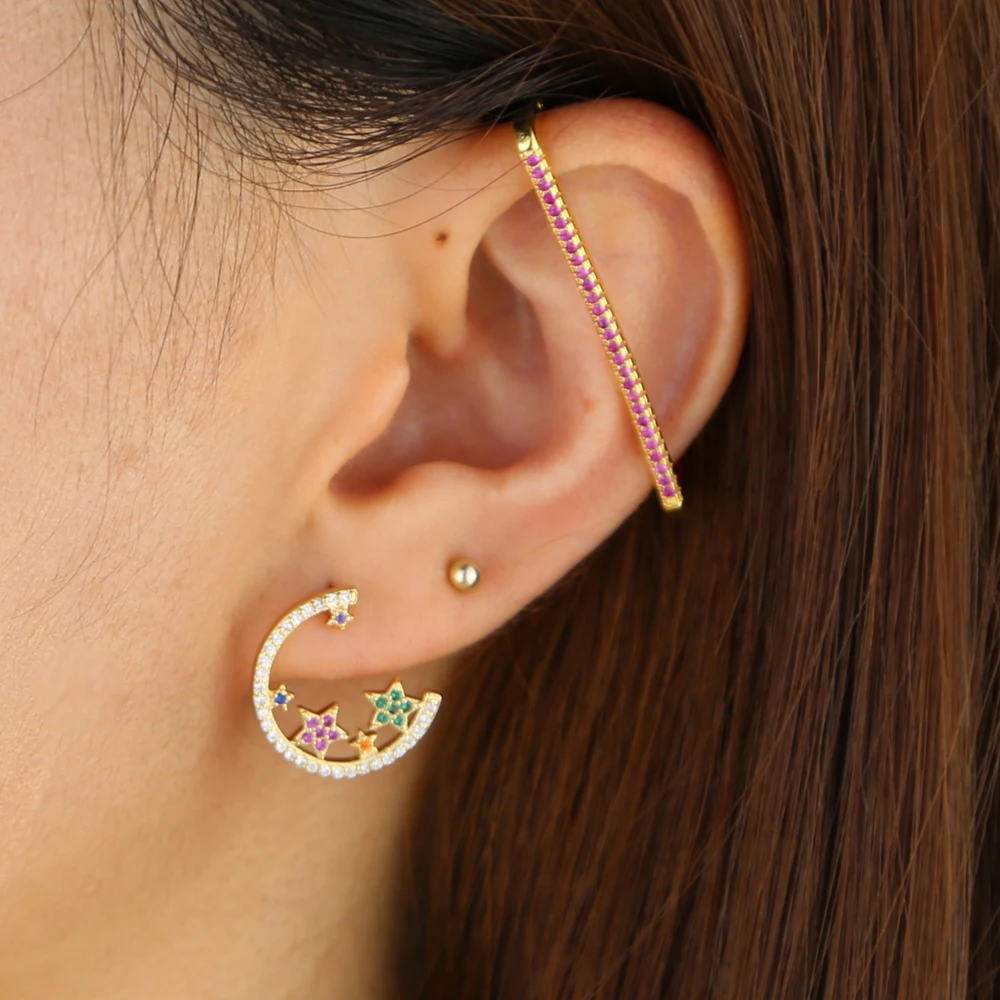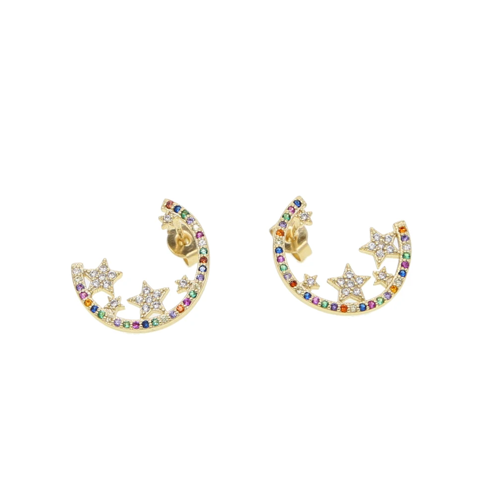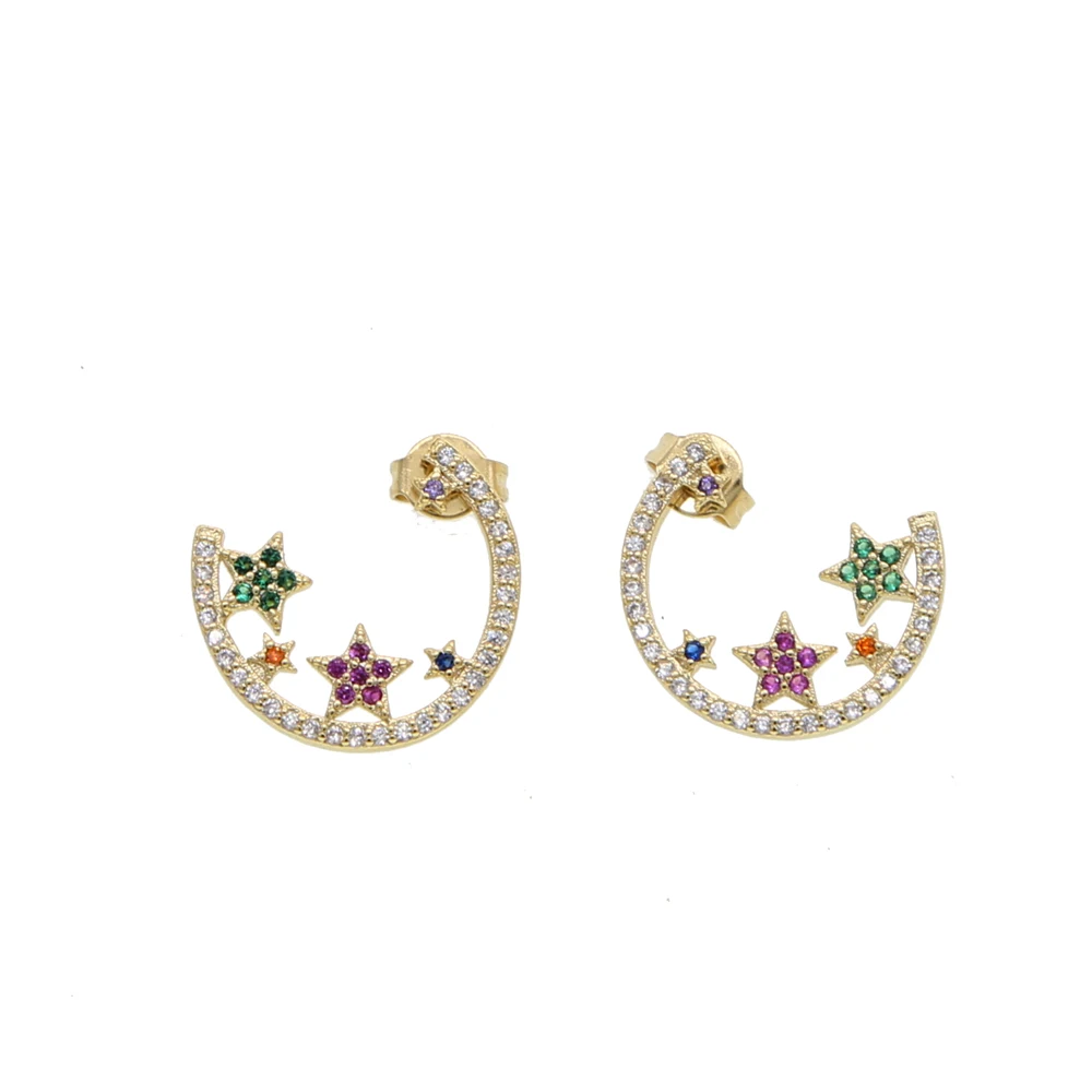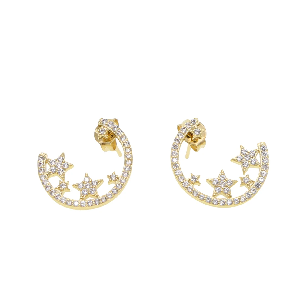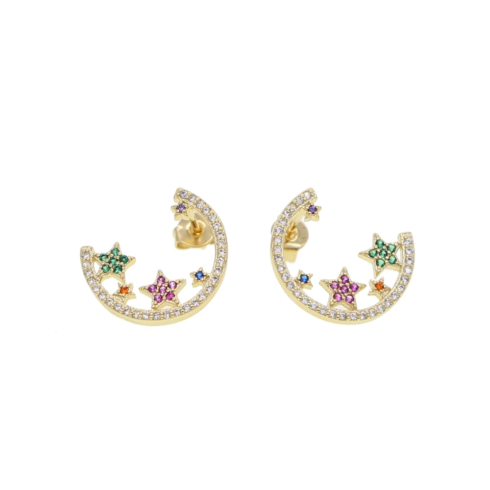 AAA кубический цирконий, кристалл, Луна, круглые серьги со звездой, круглый кристалл, ювелирное изделие для девушек, для женщин, многоцветные модные ювелирные изделия, brincos