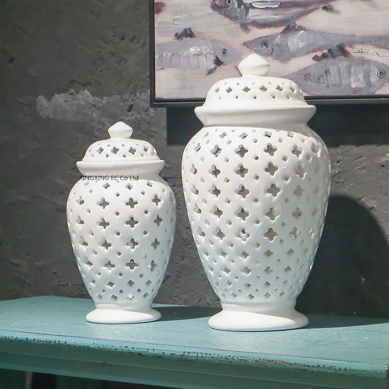 Креативная белая керамическая полая ваза, многофункциональный подсвечник с крышкой, украшение для дома