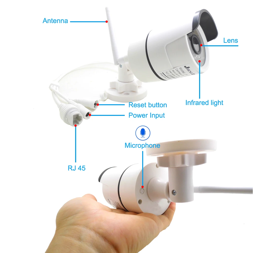 Камера видеонаблюдения, водонепроницаемая, 1080P, Wi-Fi, IP Ip-камера 720P 960P 1080P WIFI Аудио запись Объектив: 3,6 мм объектив Поддерживает как Wi-Fi, так и проводной режим Поддержка карты Micro SD, до 64 Гб (не содержит карты Micro SD); Поддержка ONVIF, может работать с сторонними вечерние NVR. Поддержка мобильного видеонаблюдения (iOS,android) Поддержка обнаружения движения и оповещения по электронной почте Поддержка ночное видение Поддержка из водонепроницаемого материала Встроенный микрофон Удаленное видео в реальном времени, звук в реальном времени Поддержка записи видео и звука