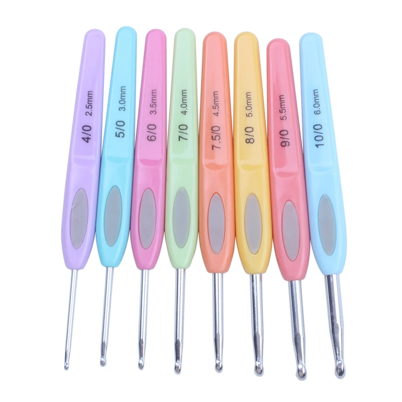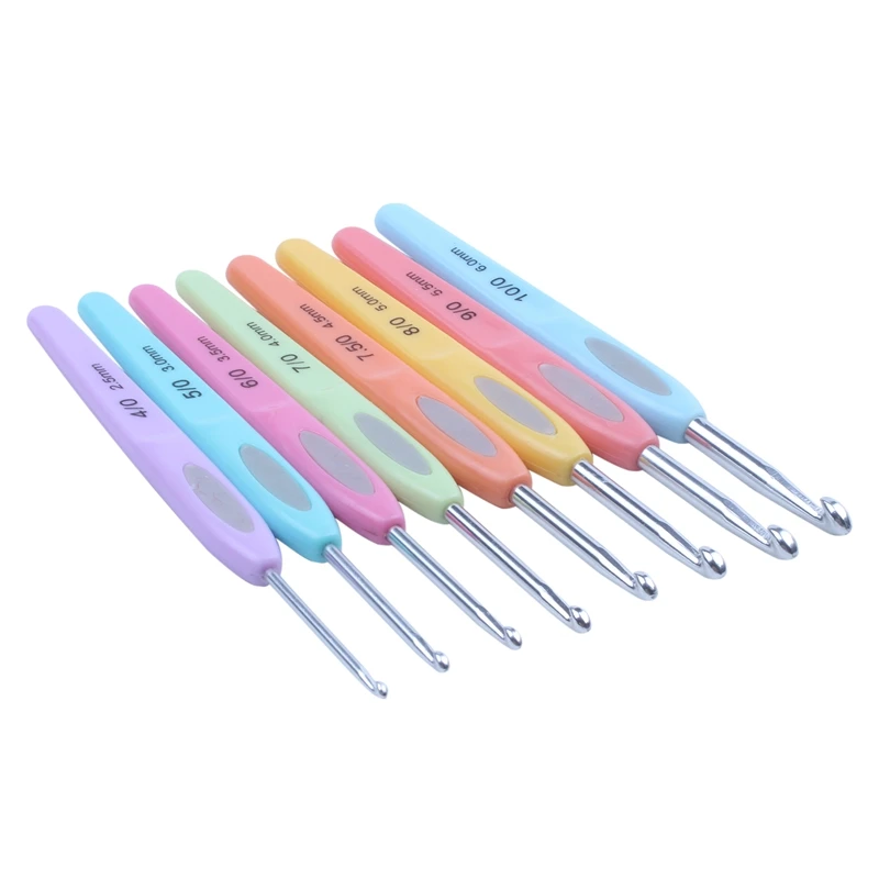 8 шт., Набор вязаных крючков из мягкого алюминия с цветной пластиковой ручкой