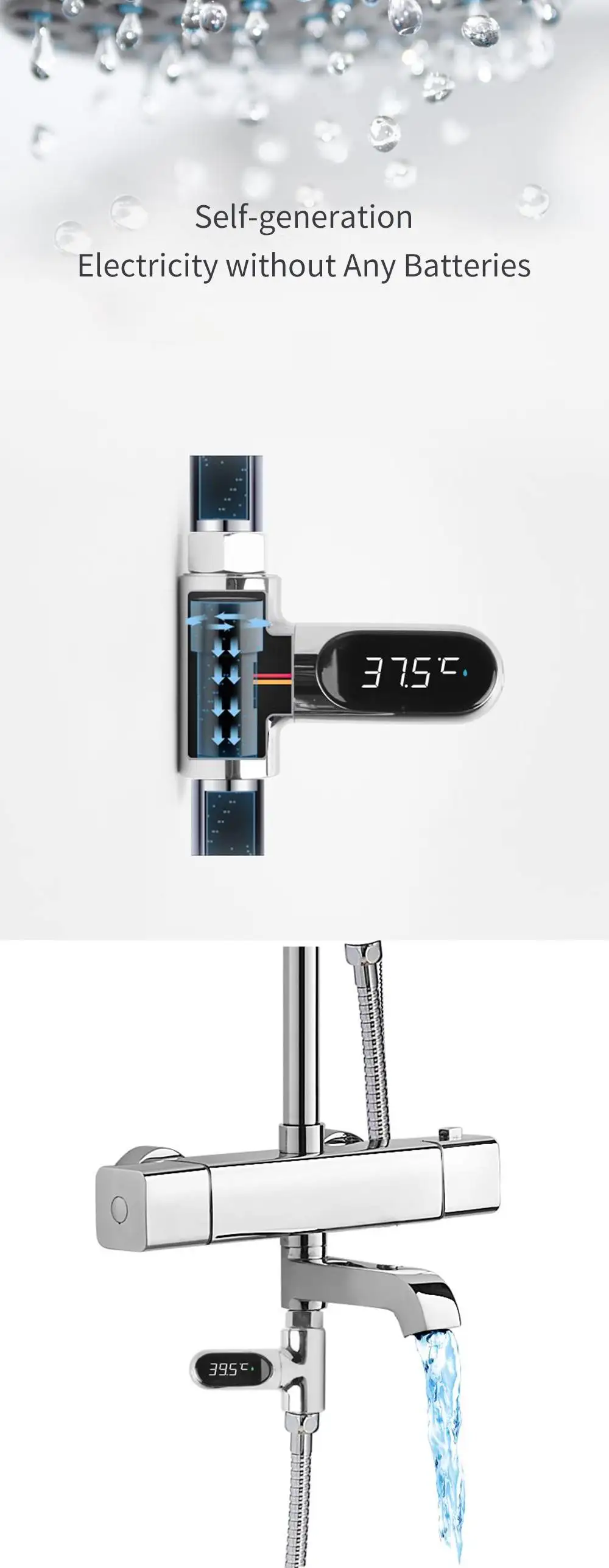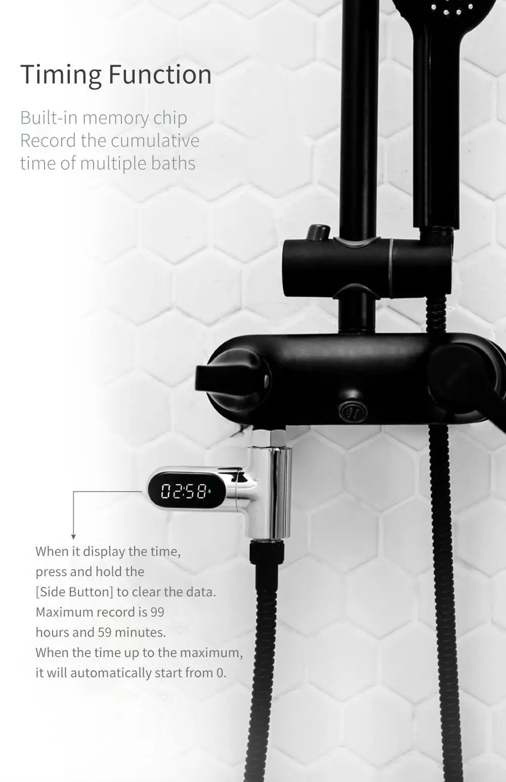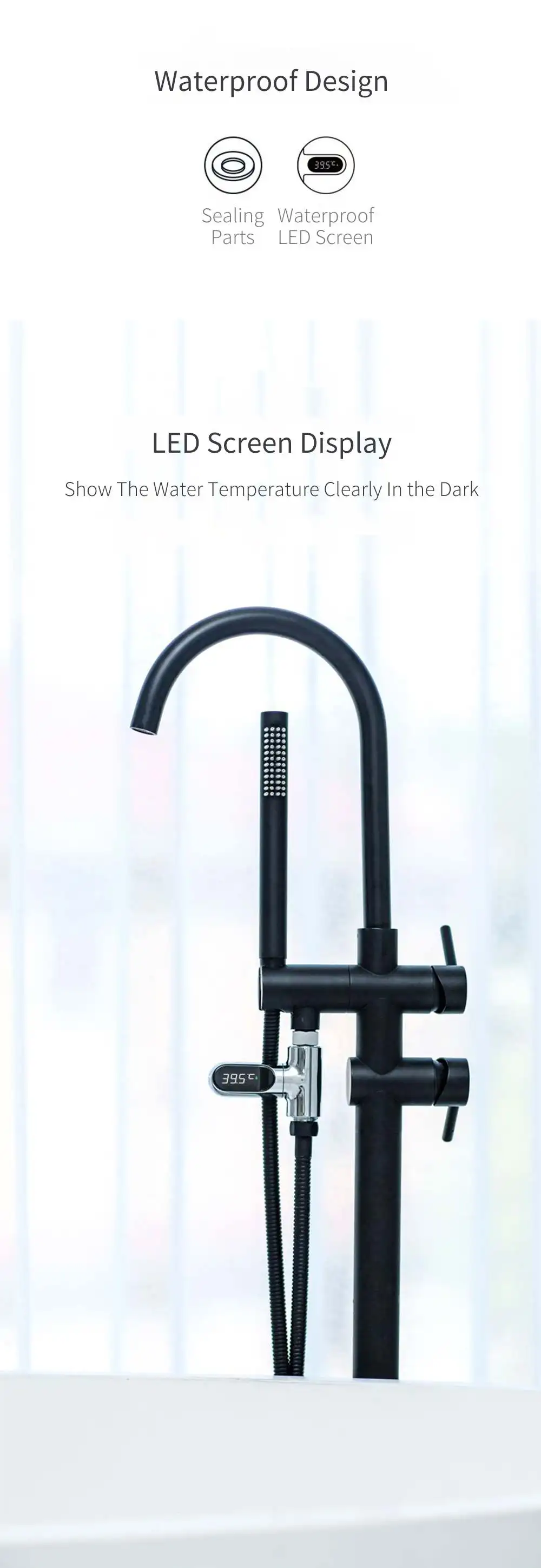 Термометр для воды и душа Zhinuan V2, светодиодный градусник по Цельсию, по Фаренгейту, с отображением времени, потока, самогенерирующееся электричество от xiaomi youpin