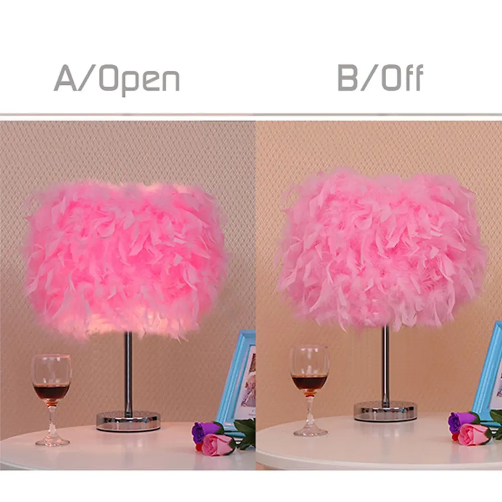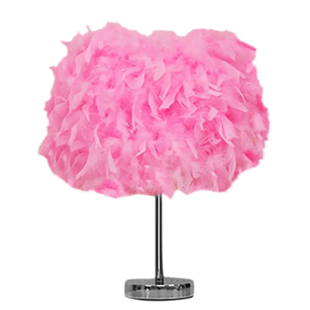 Современная настольная лампа ручной работы с искусственными перьями 15x35 см, красивый Овальный светильник с перьями и кристаллами, настольная лампа, домашний декор