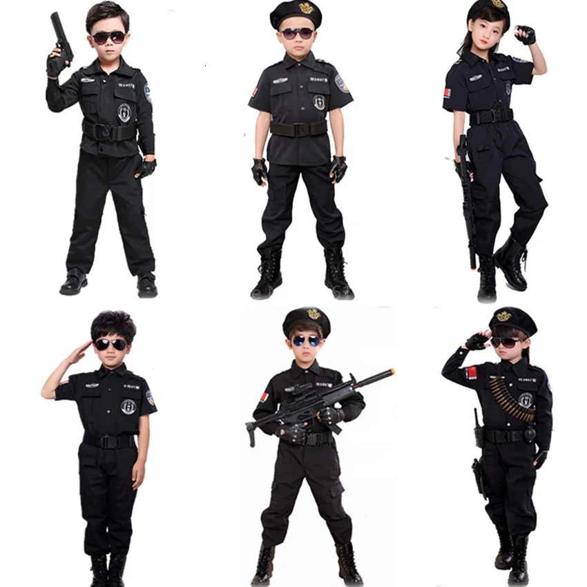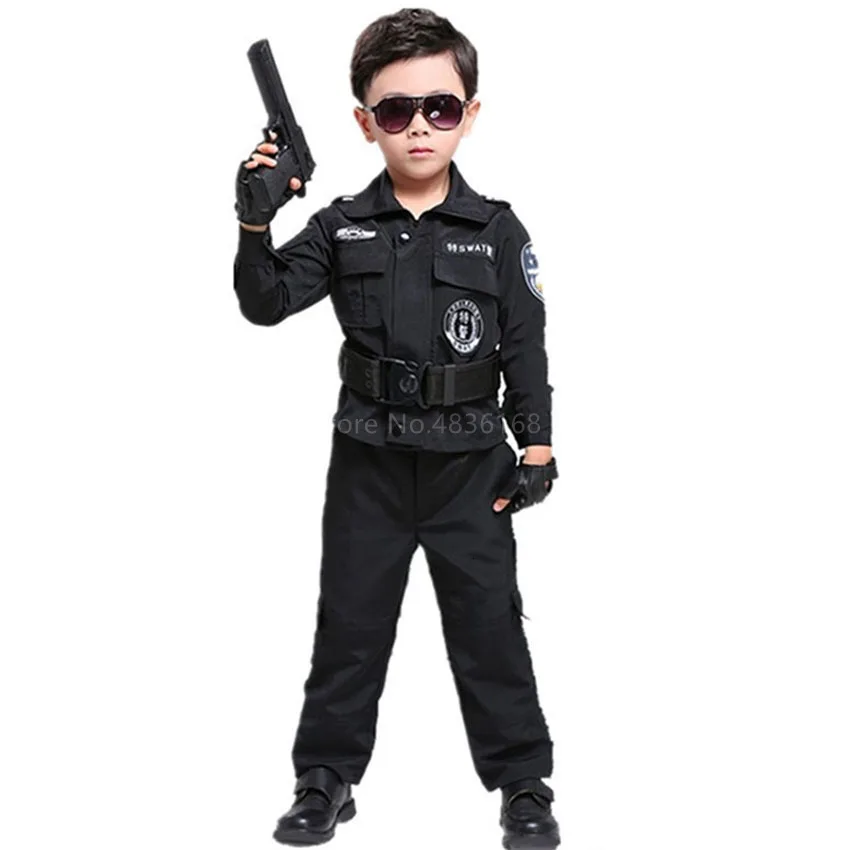 110-160 см высокое качество детский Косплей специальная полицейская форма безопасная дрель карнавал вечерние спецназ детский сад Боевая тактика костюмы