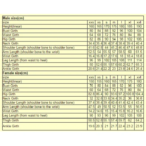 Мужчины: XXS,XS,S,M,L,XL,XXL
