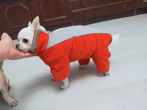 Комбинезон соответствует описанию. Красивый нежный цвет. Если бы был капюшон, было бы лучше, таки на зиму. Но я ошиблась и на маленького пуделька тоечку 2,5 кг заказала L. Большой. Купила еще M. Ждем. Доставка не очень долго, недели три.