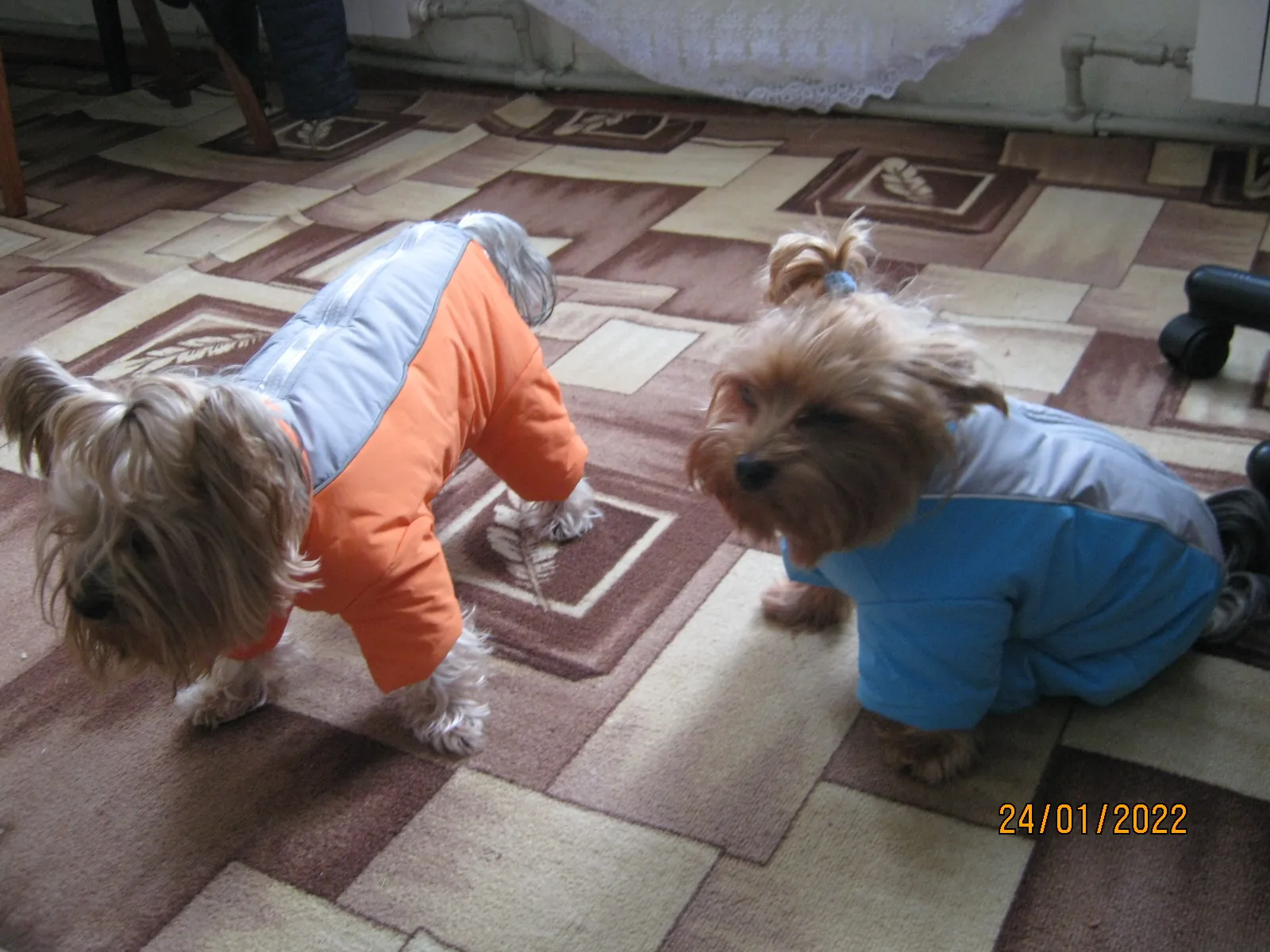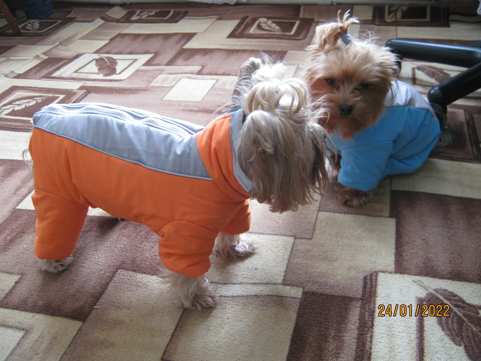 Заказ пришёл достаточно быстро, маловерия, на вес 2400 размер впритык, собака не хочет в нем двигаться. Материал немного шуршит, что тоже ей не нравится. Сшит очень хорошо, сверху светоотражающие полоски, можно было пришить ещё крепление для поводка, было бы очень удобно. Нравится, что у девочки закрыто пузико.