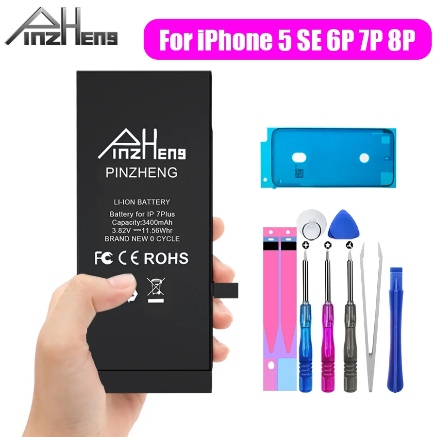 Аккумулятор высокой емкости PINZHENG 3400 мАч для iPhone 5 SE 6 7 8 Plus, Сменный аккумулятор для iPhone 6 7 8 Plus, батареи для телефонов