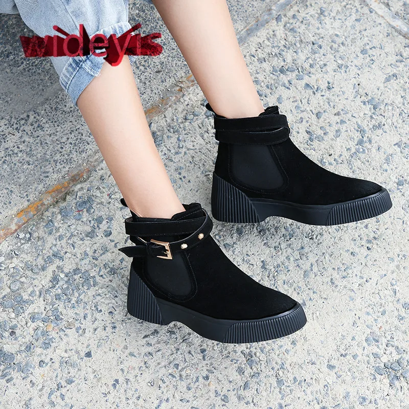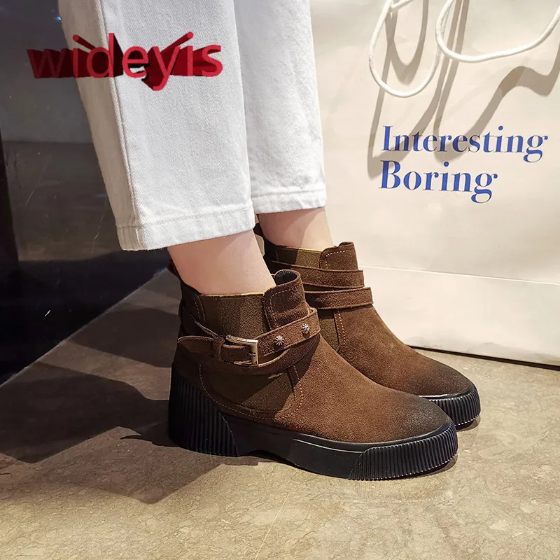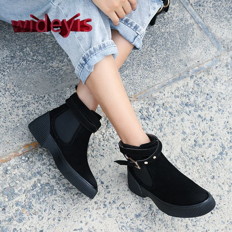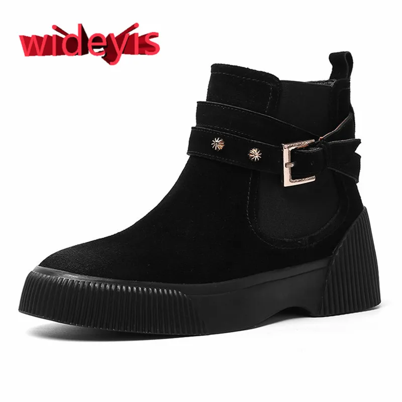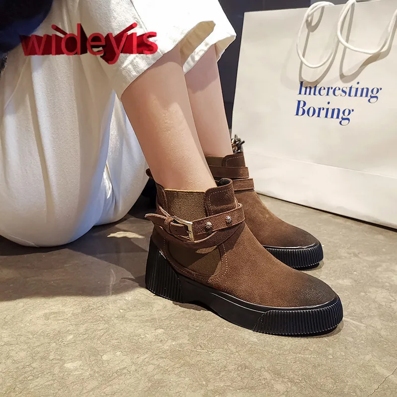 ботинки женские WIDEYIS замшевые сапоги из матовой кожи крупного рогатого скота ретро с круглой головкой толстые женские сапоги British wind Martin ботинки 2019 осень новые зимние сапоги размер 34-41