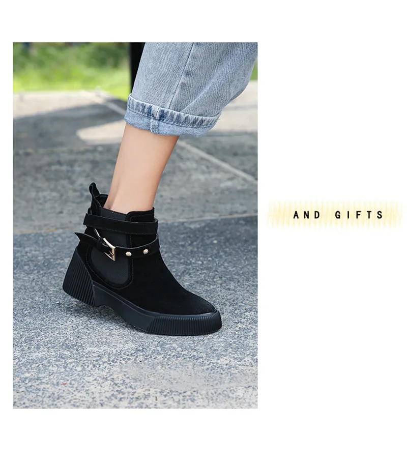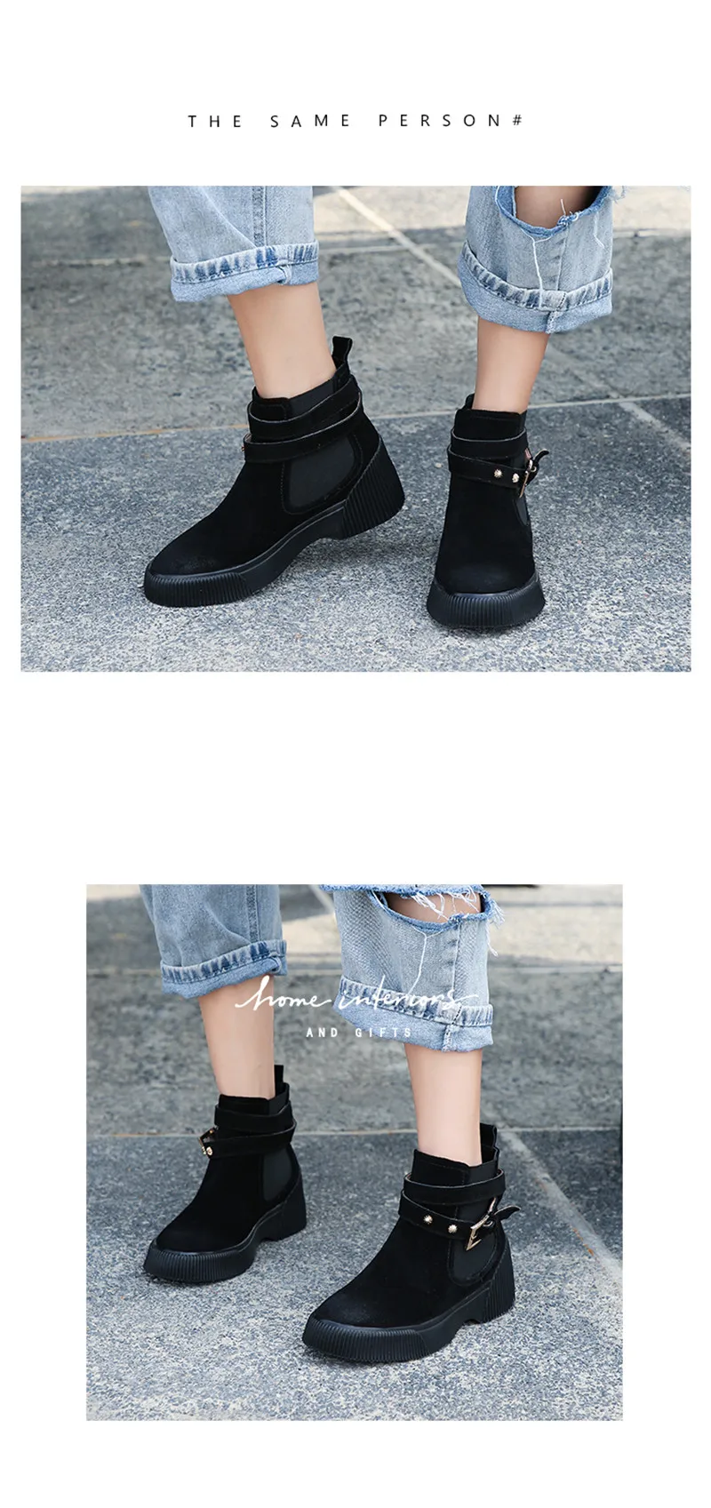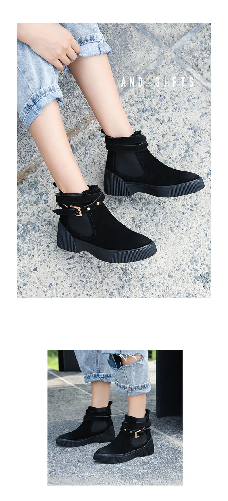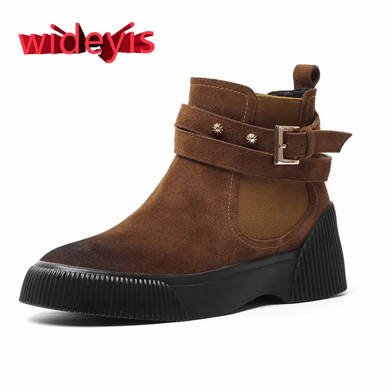 ботинки женские WIDEYIS замшевые сапоги из матовой кожи крупного рогатого скота ретро с круглой головкой толстые женские сапоги British wind Martin ботинки 2019 осень новые зимние сапоги размер 34-41