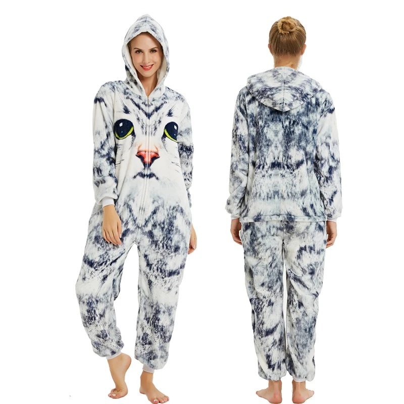 Фланелевые кигуруми, Комбинезоны для женщин, Пижамы 2019, зимняя пижама в виде животных, панды, единорога, кошки, Комбинезоны для взрослых, косплей, Пижамный костюм Kugurumi