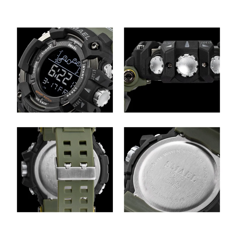 Часы SMAEL мужские, военные, спортивные, мужской секундомер, водонепроницаемые, хронограф, цифровые наручные часы для мужчин