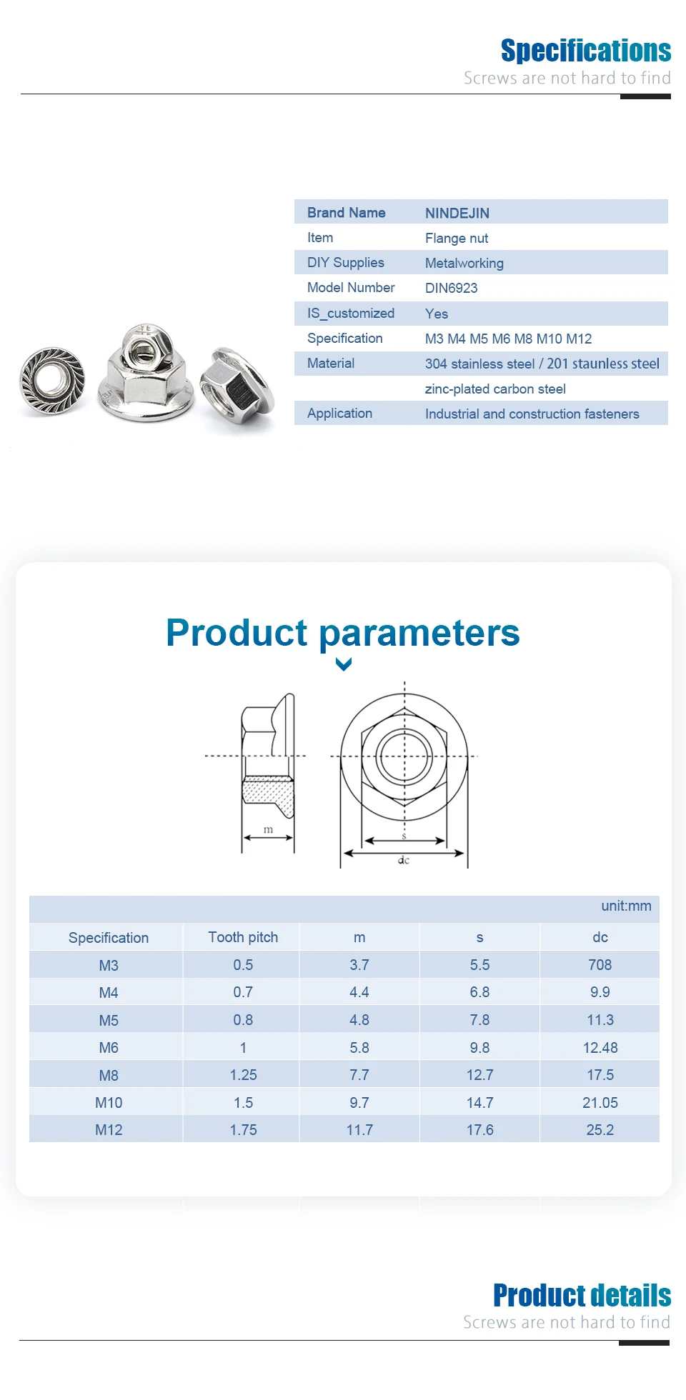 Гайка Фланцевая Шестигранная из нержавеющей стали, M3 M4 M5 M6 M8 M10 M12 оцинкованная, 10255055 шт., DIN6923