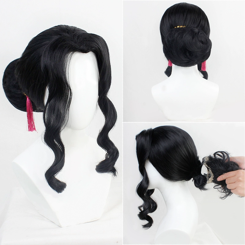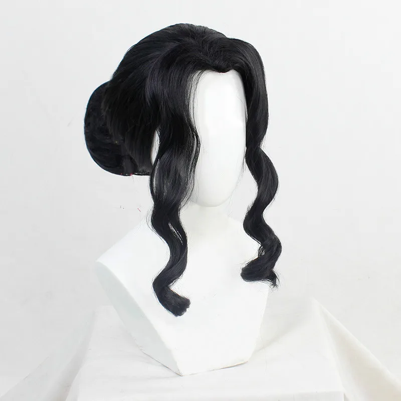 Парик для косплея женщин Demon Slayer Kimetsu No Yaiba, кибуцудзи музан, черные вьющиеся волосы для костюма, с шапочкой