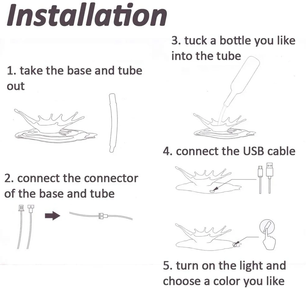 4. Светильник прочный и долговечный, может выдерживать большую часть веса бутылок, не нужно беспокоиться, что трубка будет сломана. И реалистичный всплеск сделан из экологически чистого АБС, без вреда для человеческого тела.