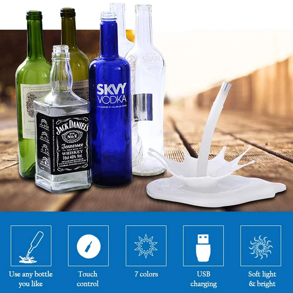 Креативный 3D светодиодный светильник для бутылки вина, декоративная лампа, 7 цветов, сделай сам, сенсорное управление, 3D бар, для заливки вина, лампа с питанием от USB, атмосферный светильник для бара, вечерние светильники для интерьера, реалистичный Новый светильник ing (без бутылки в комплекте)