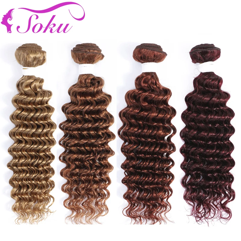 Глубокая волна человеческих волос пряди 8-26 дюймов 1 шт. наращивания блонд, коричневый, Redwine натуральные кудрявые пучки волос пряди SOKU бразильский-Волосы Remy волос для наращивания