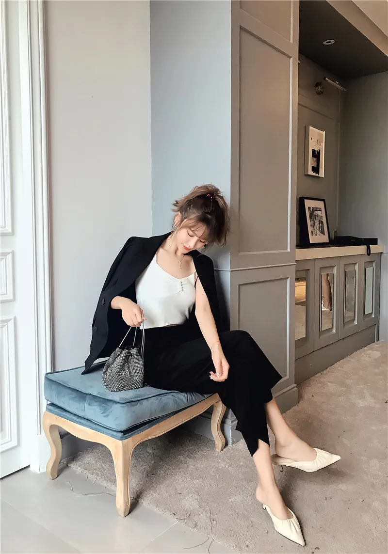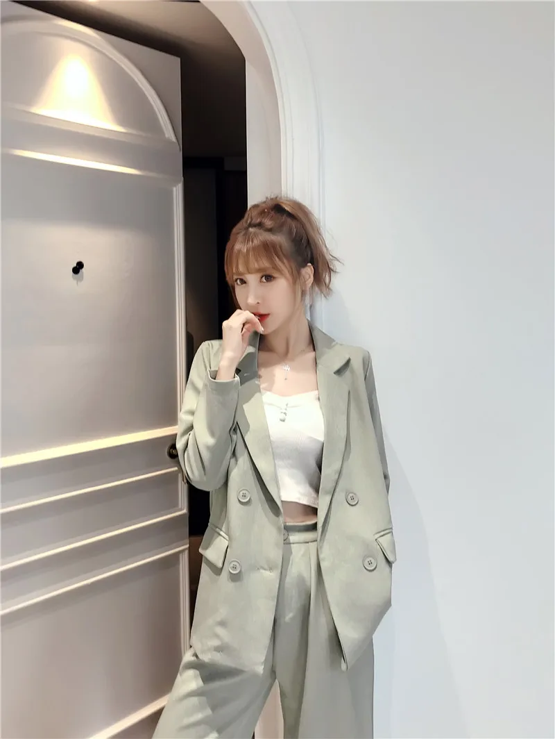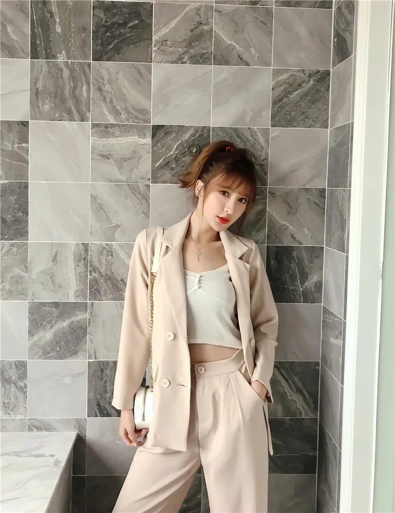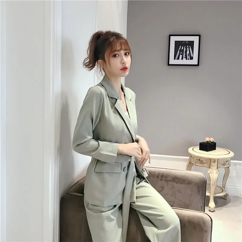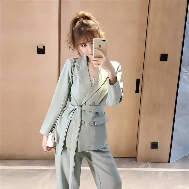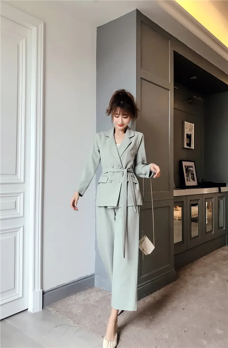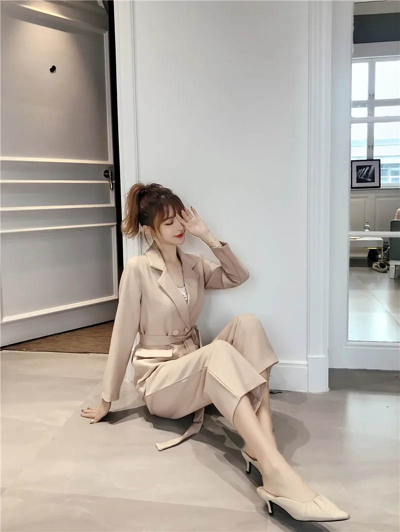 Осенне-зимний женский костюм со штанами, на шнуровке, Блейзер, куртка, широкие брюки, офисные женские комплекты