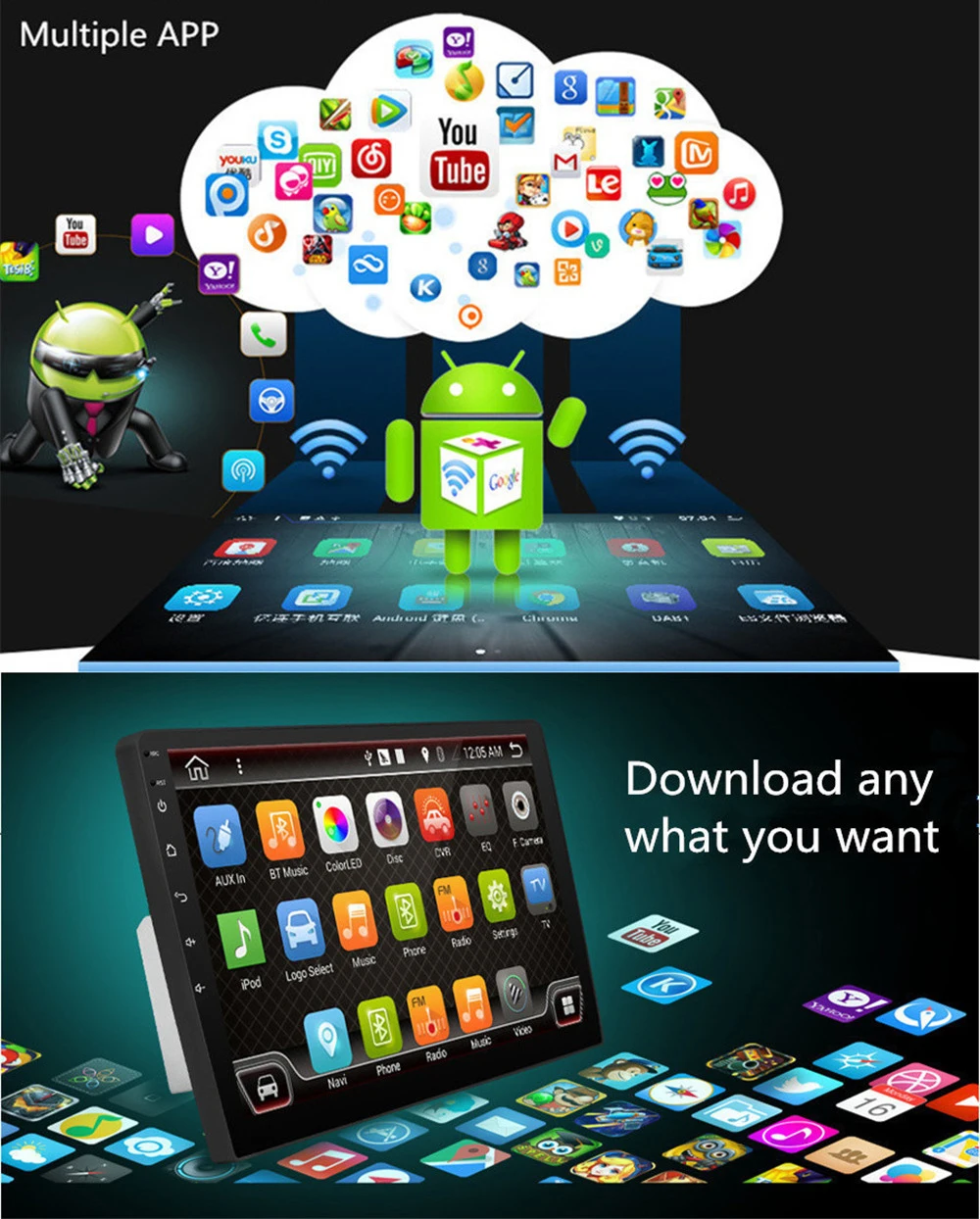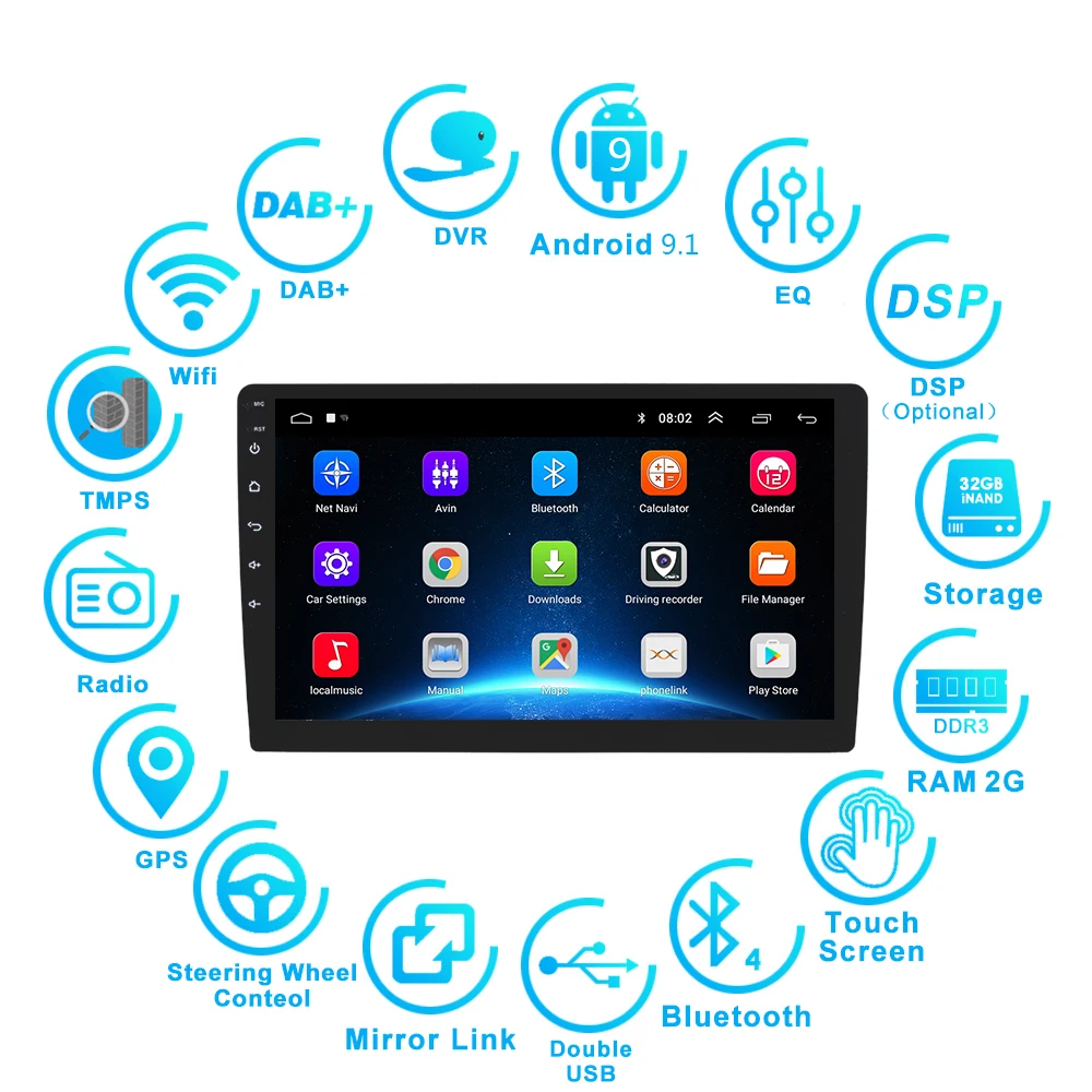 Универсальный Автомобильный мультимедийный радиоприемник 1 Din, 1/9/10 дюйма, Android 9,1, автомагнитола 1 Din, Авторадио с Gps, Fm, USB, один автомобильный стереоприемникОсобенности:-- 1/9/10 дюймовый емкостный сенсорный экран HD (1024x600): Поддержка 5-точечного мультитач высокого разрешения, удобный в использовании.-- Операционная система Android 9,1: совместима с подавляющим большинством приложений Android, вы можете устанавливать свои любимые приложения и наслаждаться передовыми технологиями.-- Встроенный Bluetooth: Встроенный микрофон, поддержка каталогов и музыкальные функции Bluetooth, когда у вас есть входящий вызов, музыка автоматически останавливается, чтобы вы могли наслаждаться свободным звонком.-- Встроенный WiFi: Поддержка стандарта WLAN 802.11b / g / n, высокая производительность, низкое энергопотребление.-Встроенный GPS: вы можете загрузить онлайн-приложение GPS, например Waze/Navfree/Google Map, или получить онлайн-поставщиков исходных карт для использования спутниковой навигации, И карта может быть запущена в фоновом режиме, и она поддерживает голосовое руководство.-- Поддерживает мультимедийный плеер Android: можно воспроизводить музыку, фильмы, фотографии с локального диска или USB.-- Поддержка HD-камеры: Стабильный дисплей и четкое изображение, который имеет широкий угол обзора 120-140 градусов.-- Декодирование аудио и видео в нескольких форматах: Поддержка полноформатного формата 1080P.-- Многоязычный: английский/русский/французский/немецкий/испанский/итальянский/Португальский и т. д. 40 языков.-- USB: поддержка 32 GB USB-накопителя (не входит в комплект).-- Управление рулем: удобно менять трек, громкость и т. Д.-- Поддержка диагностического сканера автомобильного интерфейса OBD2 OBD2 (ELM327).-- FM Fadio частота: 87,5-108 мгц.-- Зеркальное отображение телефона: для телефона Android, зеркало и управление на устройстве через USB-кабель подключения; Воздушное воспроизведение для iPhone, просто зеркало через wifi-соединение. Спецификация:-- Система: Android 8,1/9,1-- Оперативная память: DDR3 1/2 ГБ-- Память тела: 16/32 г-- Размер экрана: 10,1/9 дюймов-- Размер блока: 1 Din-- Разрешение экрана: Емкостный HD-экран 1024x600-- Мобильный телефон Соединение: Поддержка двунаправленного соединения Android и однонаправленного соединения iOS-- GPS-навигация: Поддержка-- Радиодиапазон: FM 87,5-108 МГц-Язык: английский, русский, итальянский, турецкий, японский, немецкий, французский, португальский, арабский, португальский, китайский ....-- Обратный Видеовход: Поддержка-- Управление рулевым колесом: Да-- Поддержка Bluetooth-- USB-интерфейс: USB-выход-- Полностью сенсорная панель Аксессуары-1 Автомобильный MP5-1 Кабель GPS-2 USB-кабеля-1 кабель питания-1 кабель RCA-1 входной кабель для камеры Пожалуйста, обратите внимание: Этот список предназначен только для хоста и iso проводов, мы не предлагаем монтажные кронштейны, вам, возможно, потребуется заказать рамку для установки изделия.