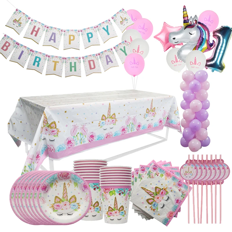 Посуда сказочная в виде единорога для девочек, украшение для дня рождения 1, 2, 3 лет, товары для праздника в честь Дня Рождения