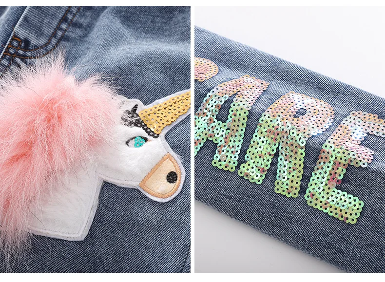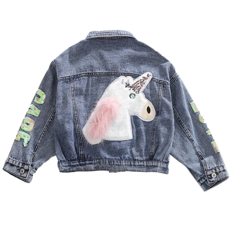 Куртка с длинными рукавами и единорогом для девочек; пальто; осенние детские джинсовые куртки; вечерние пальто-кардиганы для девочек; Верхняя одежда для девочек
