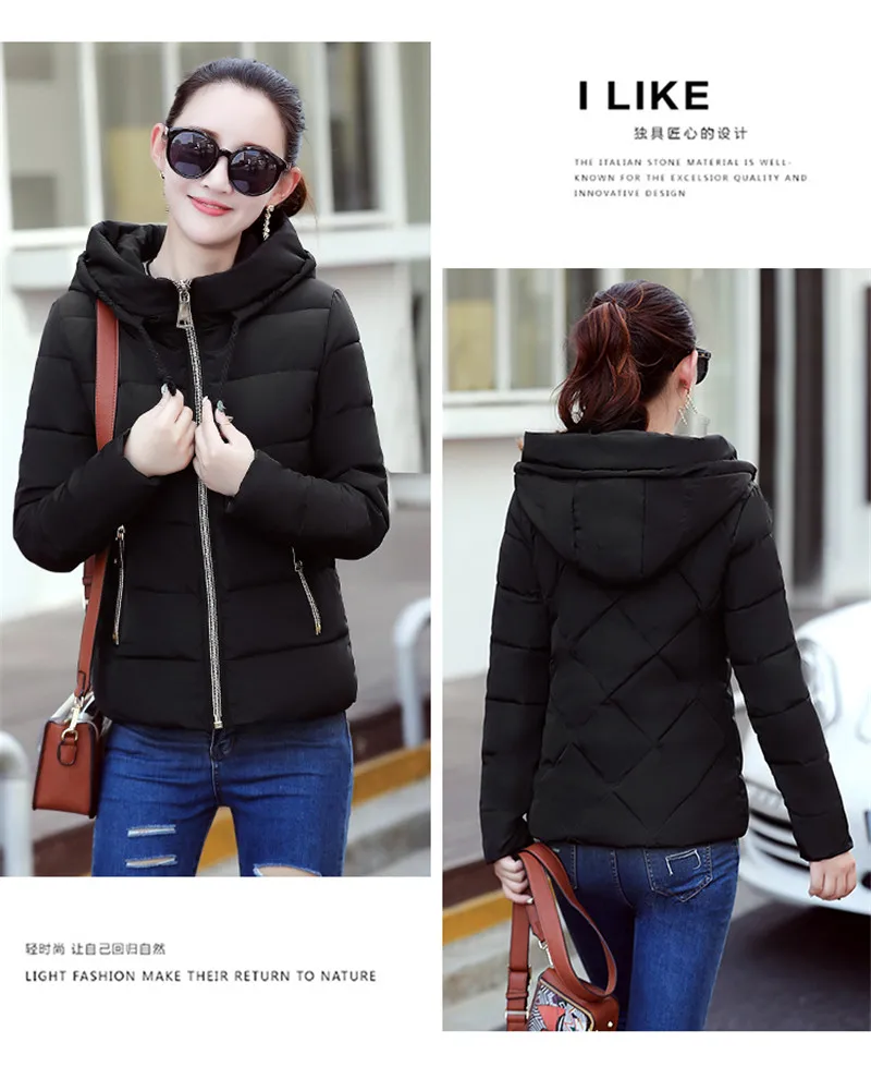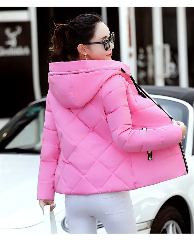 Женская зимняя куртка свободные парки теплая плотная куртка с капюшоном, повседневная женская обувь, куртка на подкладке из хлопка короткое легкое пальто mujer P21