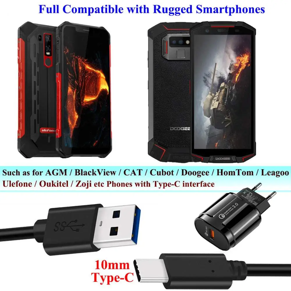 Автомобильное зарядное устройство QC 3,0 EU AC + кабель типа C 10 мм для Blackview BV5100 BV5900 BV6300 BV6900 BV9500 BV9600 BV9700 BV9800 BV9900 Pro