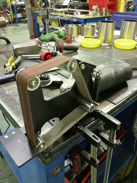 Диаметр зажимного кольца для болгарки маловат, пришлось переюделывать, ленты идущие в комплекте плохо склеены, место склейки бьет по материалу, рвутся через 30 секунд, после двух недель работы подшипники в роликах начали хрустеть.