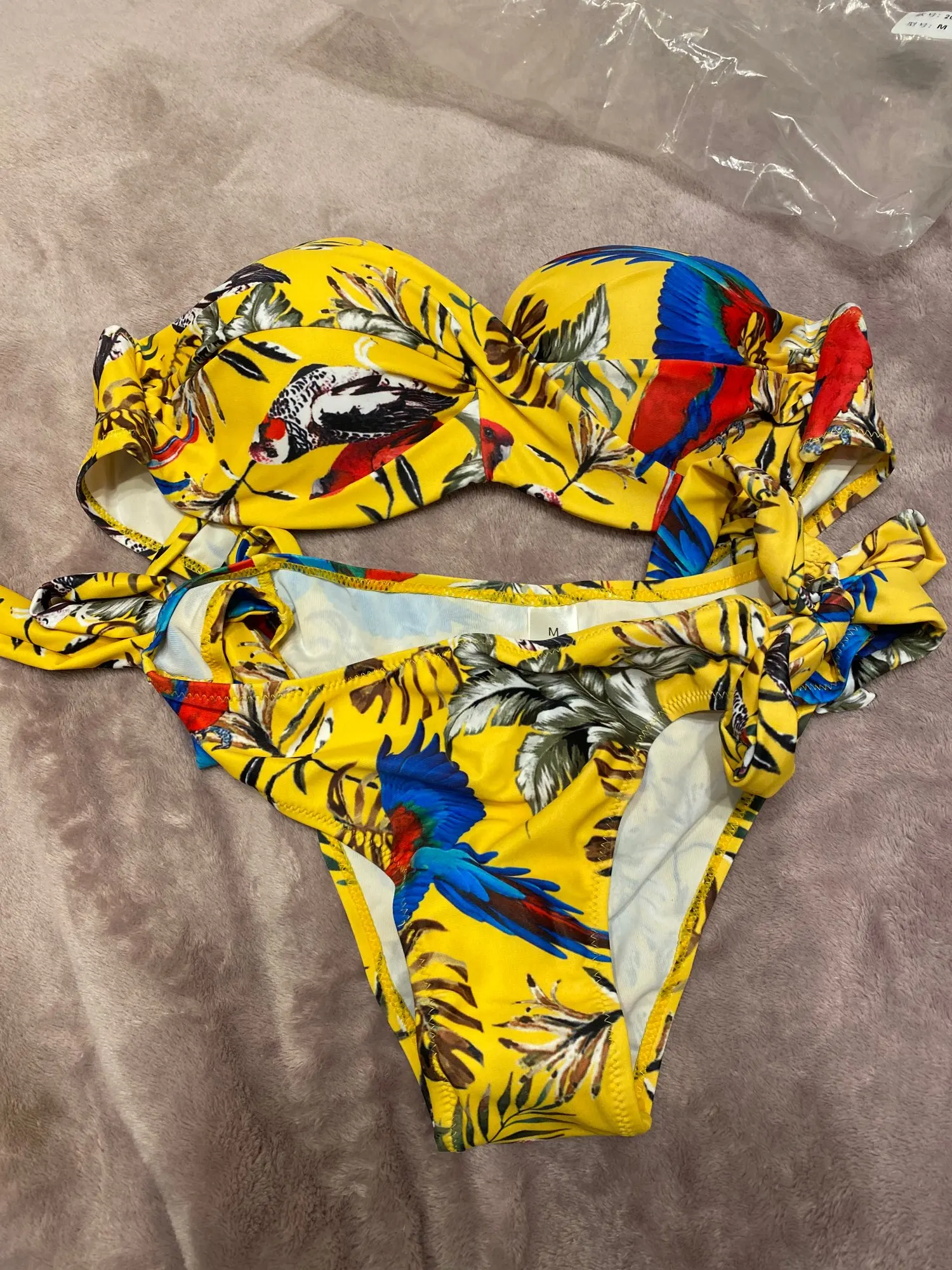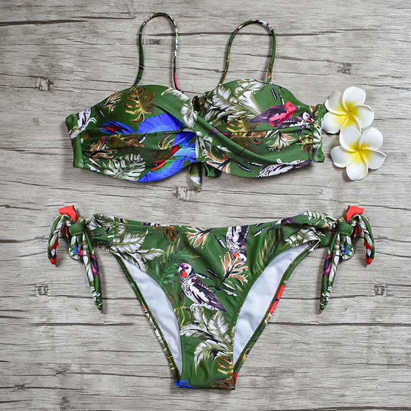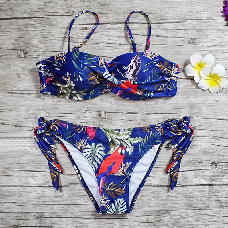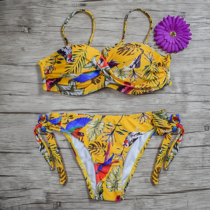Бикини пуш-ап женское с цветочным принтом, пикантный бандажный купальник из двух предметов, купальный костюм, пляжная одежда, лето 2022