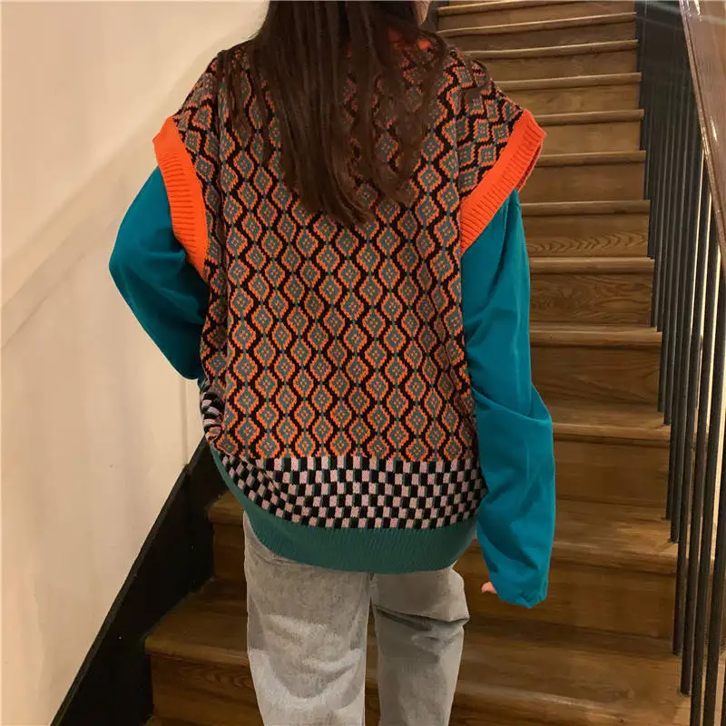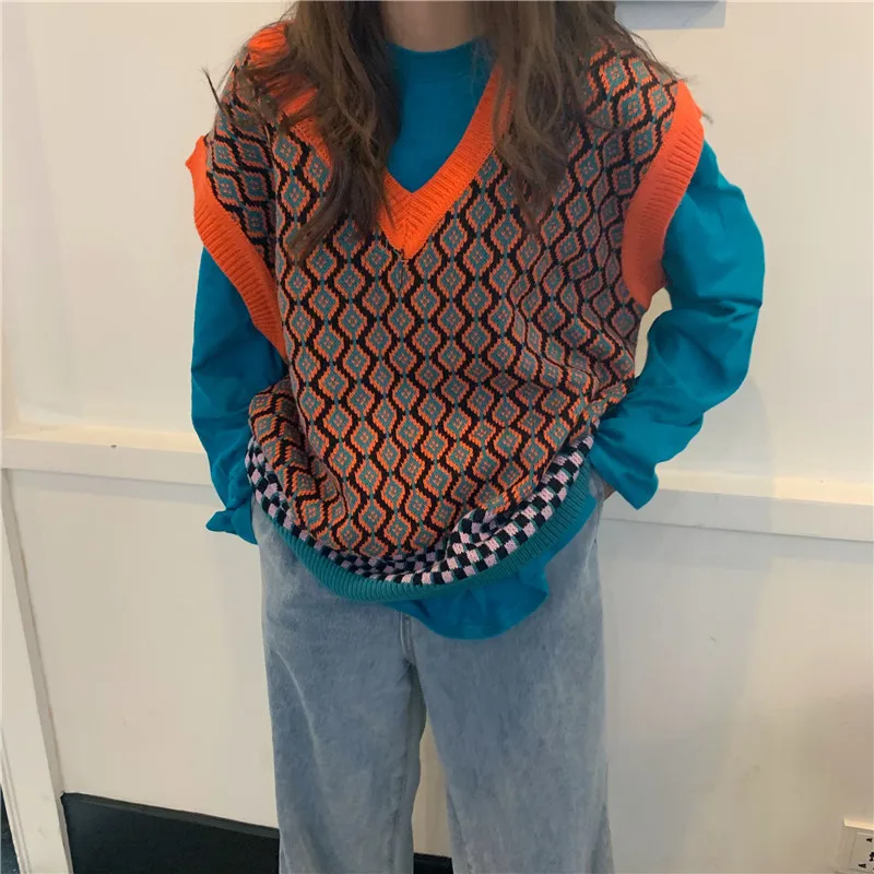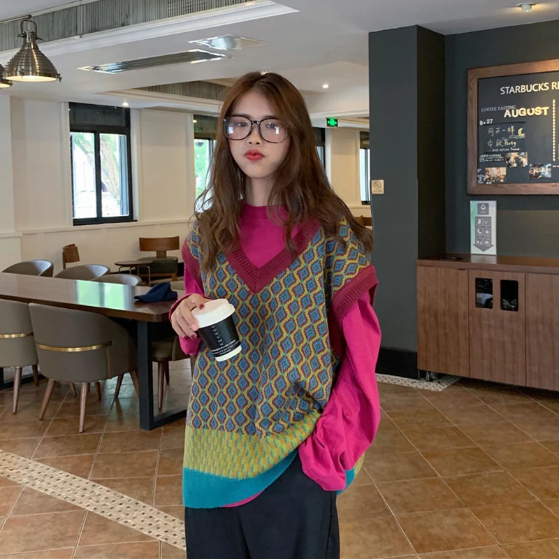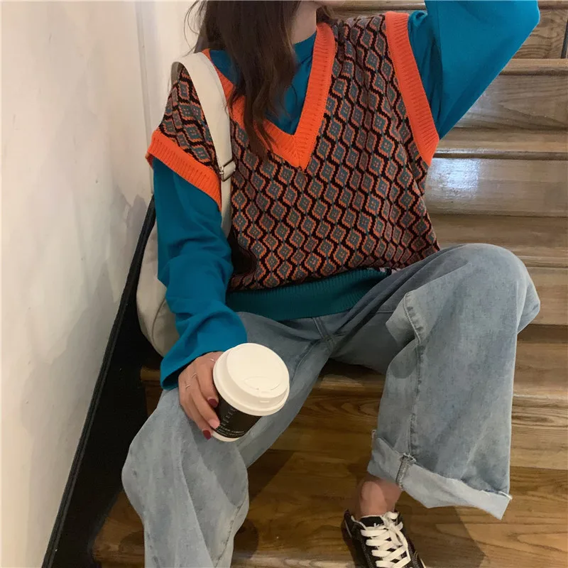 Женская свободная футболка-оверсайз, вязаный жилет, свитер, повседневные блузки, комплект из 2 предметов, весна-осень, NS117