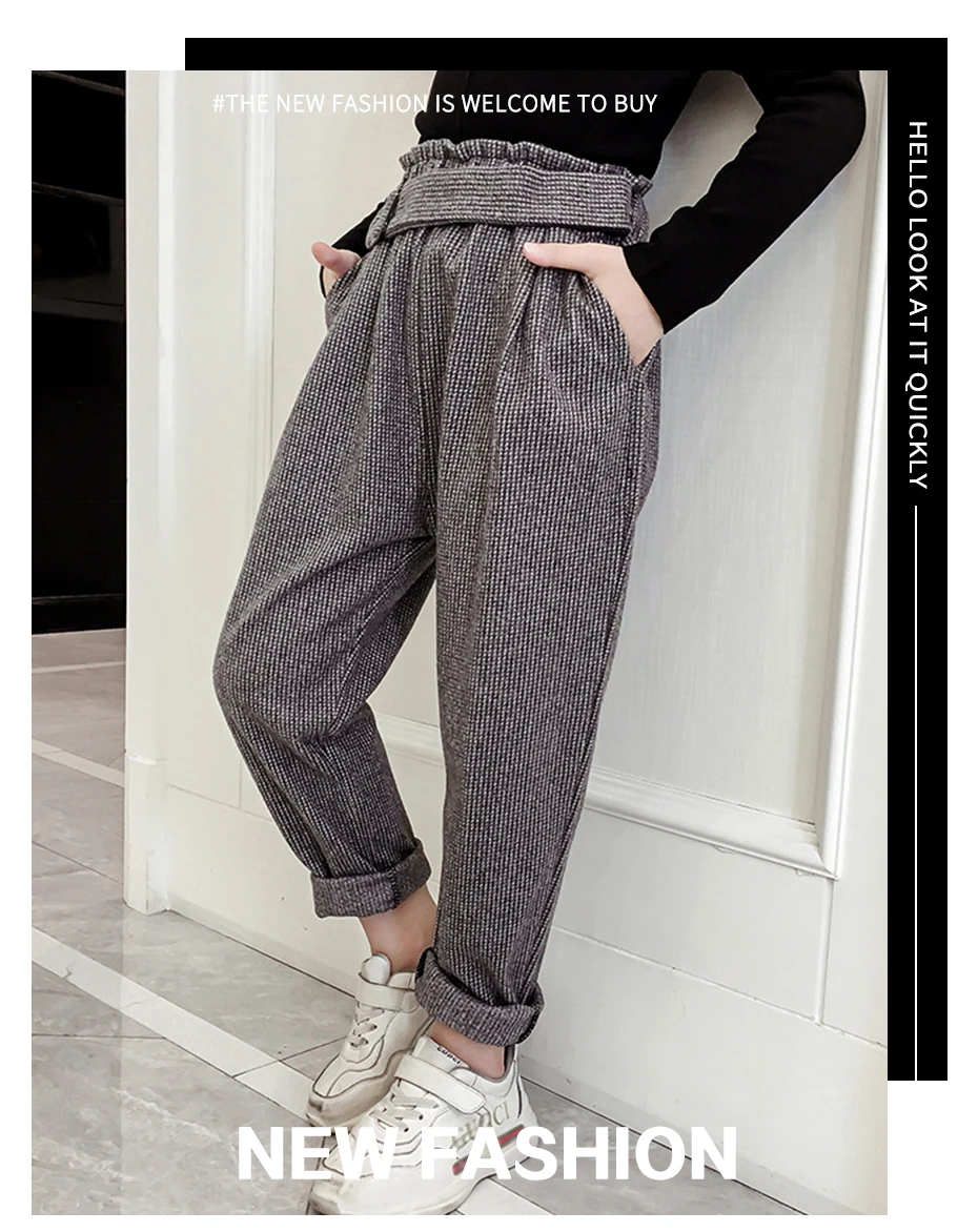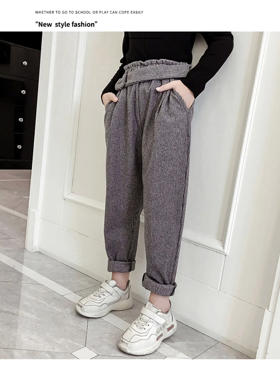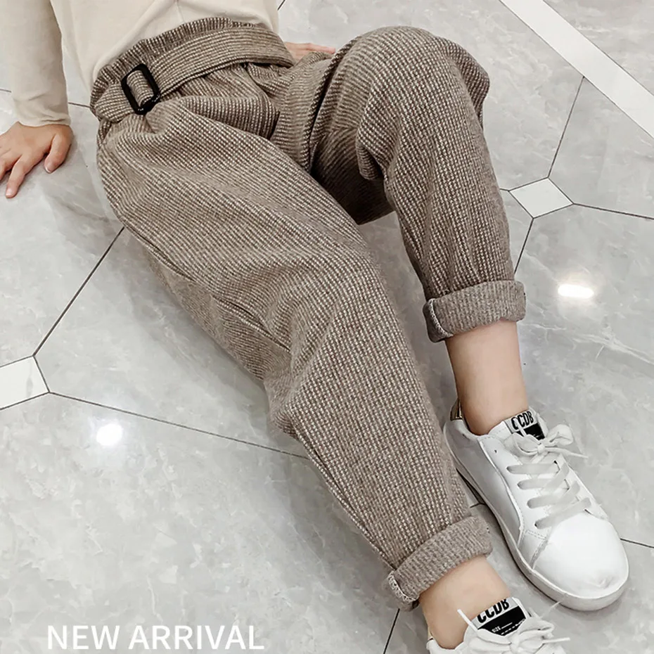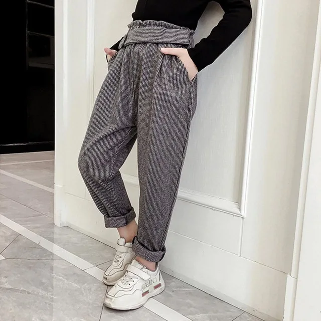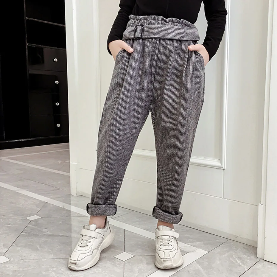Штаны-шаровары для девочек, шерстяные детские свободные штаны в клетку штаны с эластичной резинкой на талии для девочек, зимний детский повседневный костюм, штаны
