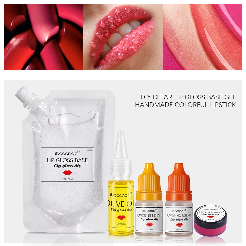 Блеск для губ ручной работы: прозрачный блеск для губ базовый гель, цветной порошок, оливковое масло, аромат, витамин е