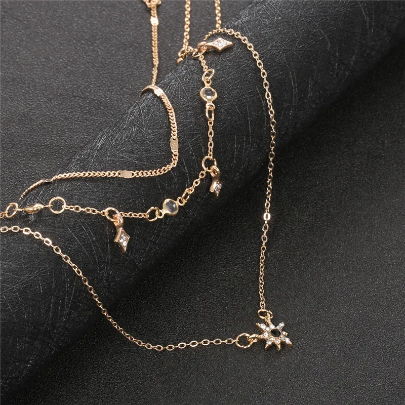 Богемные ювелирные изделия Многослойные кристалл кулон ожерелье для женщин Золотой Цвет звезда колье ручной работы ожерелье ювелирные изделия