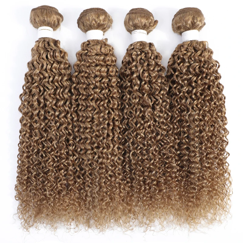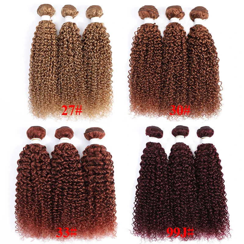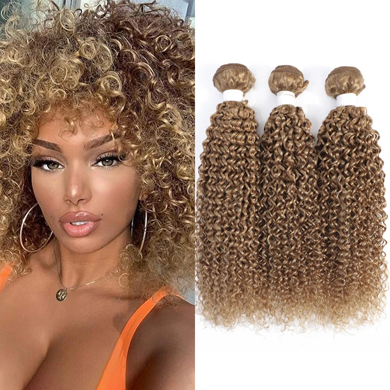 SOKU бразильские кудрявые вьющиеся человеческие волосы пряди 100% натуральные кудрявые пучки волос пряди 34 шт. наращивания блонд, коричневый, RedWin Non-Волосы Remy пряди