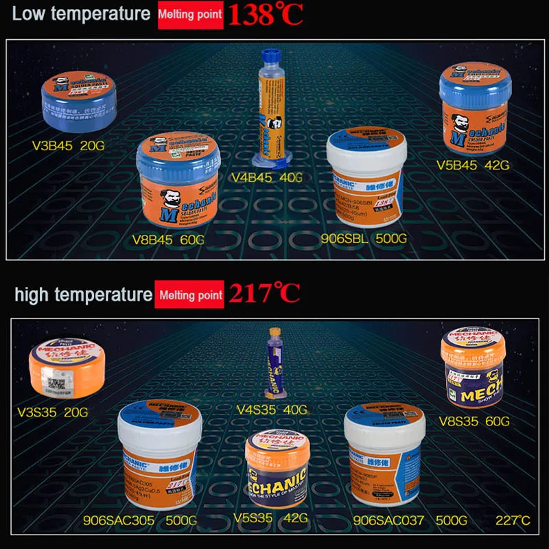 Механик бессвинцовой BGA паяльная паста точка плавления 138217 градусов сварки пастообразный флюс Процессор BGA паяльная канифоль флюс паяльной пасты