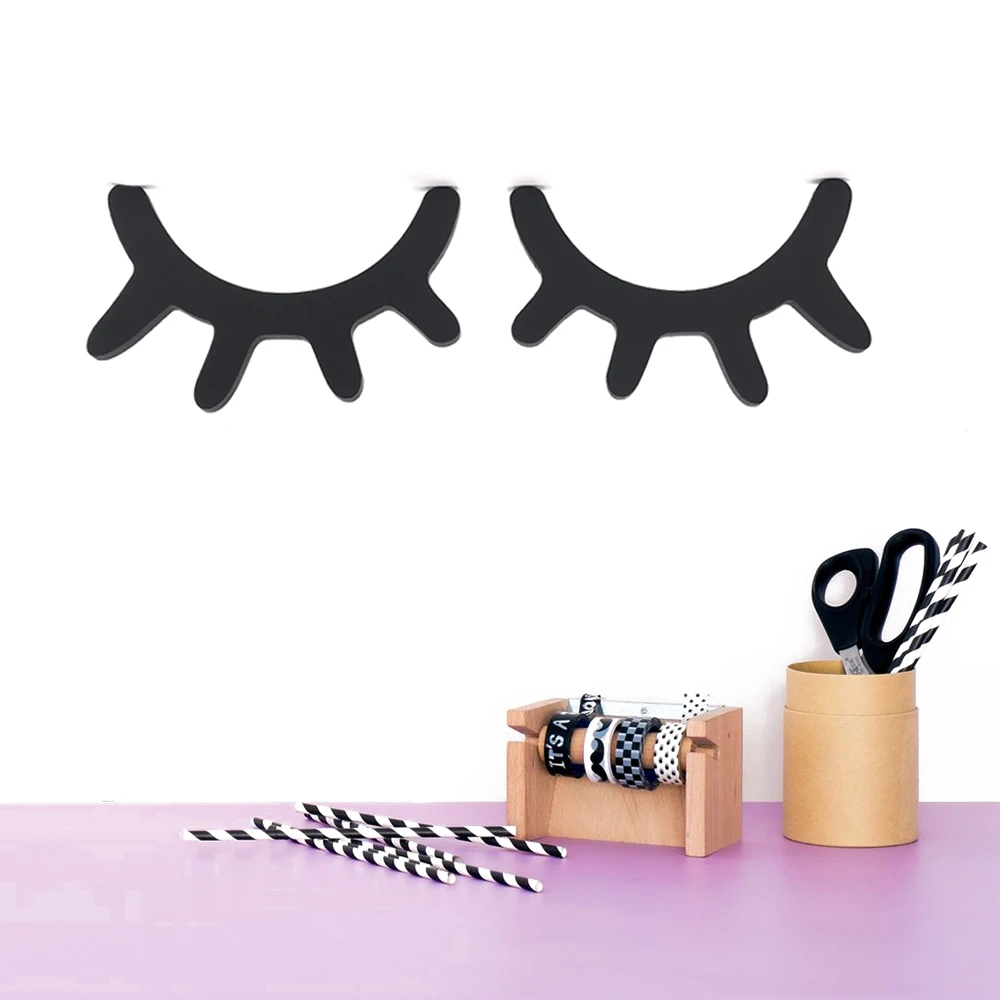 1 пара симпатичных деревянных 3D ресниц в скандинавском стиле, настенные Стикеры, декор для детей, детской комнаты, фоновая Наклейка на стену, украшение для дома