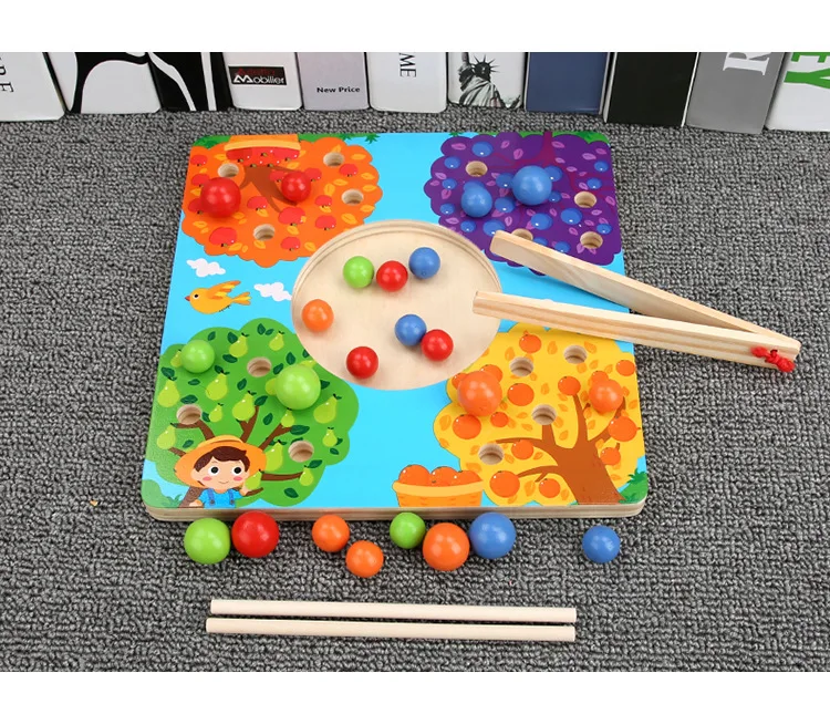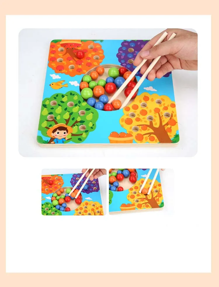 Новые деревянные пазлы Монтессори, палочки для еды, тренировочный зажим для шариков, развивающая игра, развивающие игрушки для детей