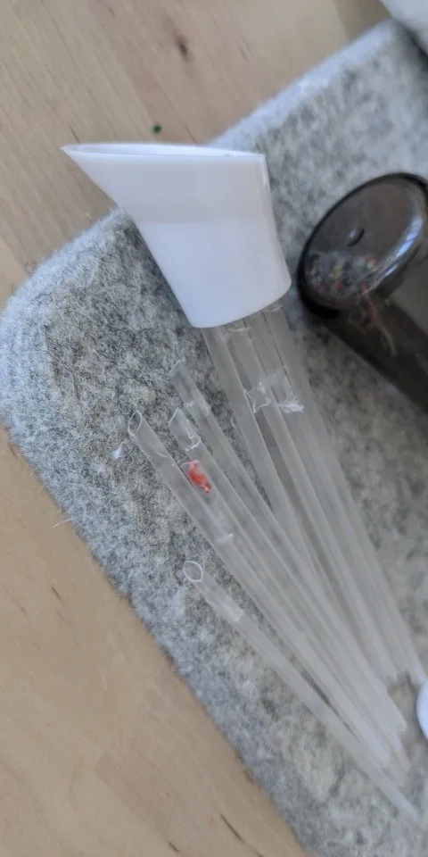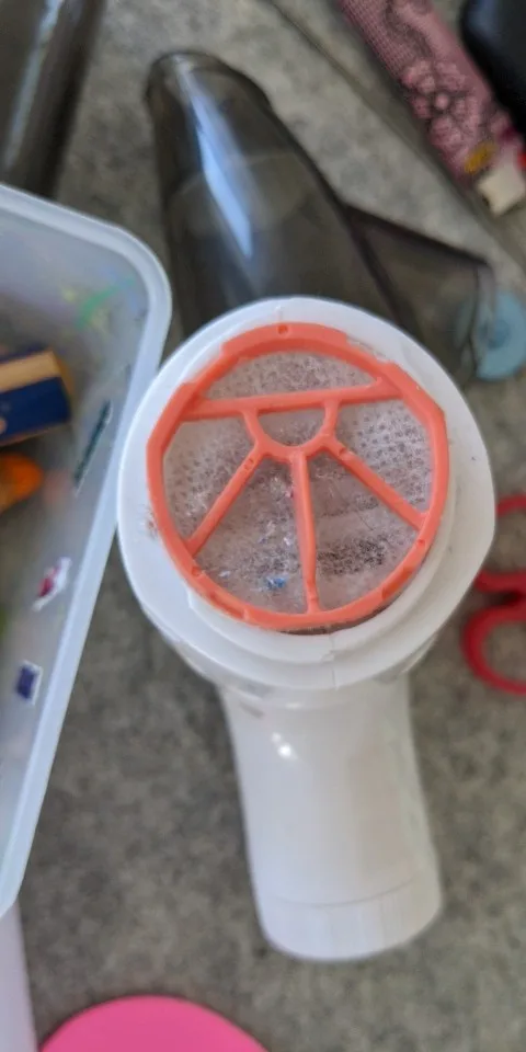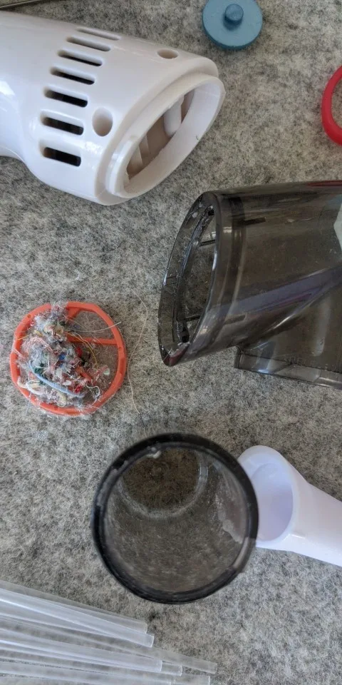 Пылесос отлично собирает мелкие детали (дети собирают ими рассыпавшиеся термобусины). Я использую для чистки оверлока. Насадки надеваются очень туго. Я делаю это с трудом, дети не могут вообще. маленький контейнер отлично снимается и надевается, а вот место сочленения ручки и прозрачной части очень трудно собрать. Пока не сломалось, но приходится при чистке прилагать значительное усилие. Недостатки: 1. Насадка с трубочками развалилась сразу (см. фото). Трубочки не держатся в ней, они рассыпались, клей отвалился. Я купила пылесос, рассчитывая именно на эту насадку, чтобы чистить оверлок, но воспользоваться ею не получилось. попробую сама всё переклеить. 2. фильтр, который защищает мотор, очень плохой, отклеился сразу и, главное, не подходит по размеру к