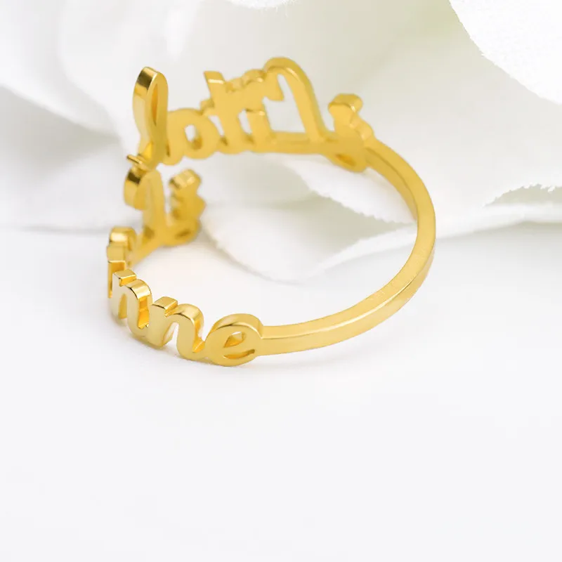 Двойные имена на заказ, стандартное Золотое кольцо из нержавеющей с...