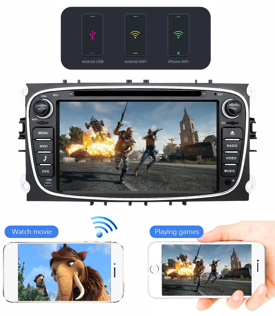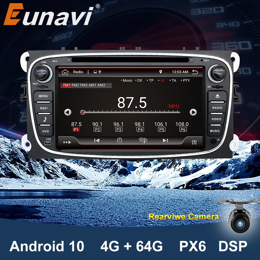 Автомагнитола Eunavi 2 din, мультимедийный проигрыватель на Android 10, с 4 + 64 ГБ, GPS, для FORD Focus Mondeo S-MAX, C-MAX, Galaxy