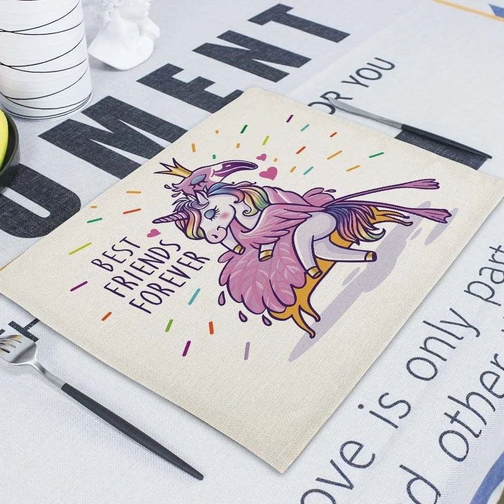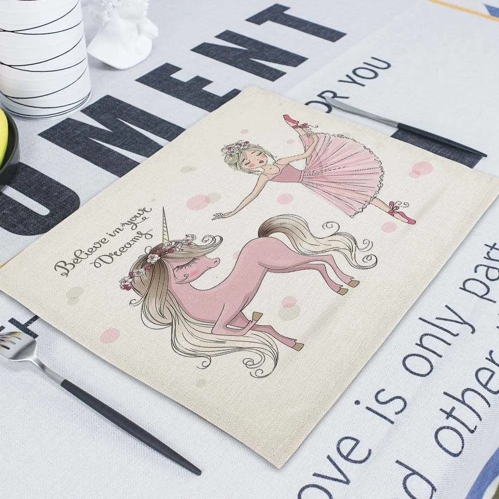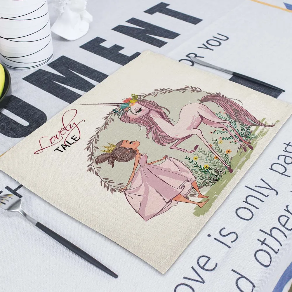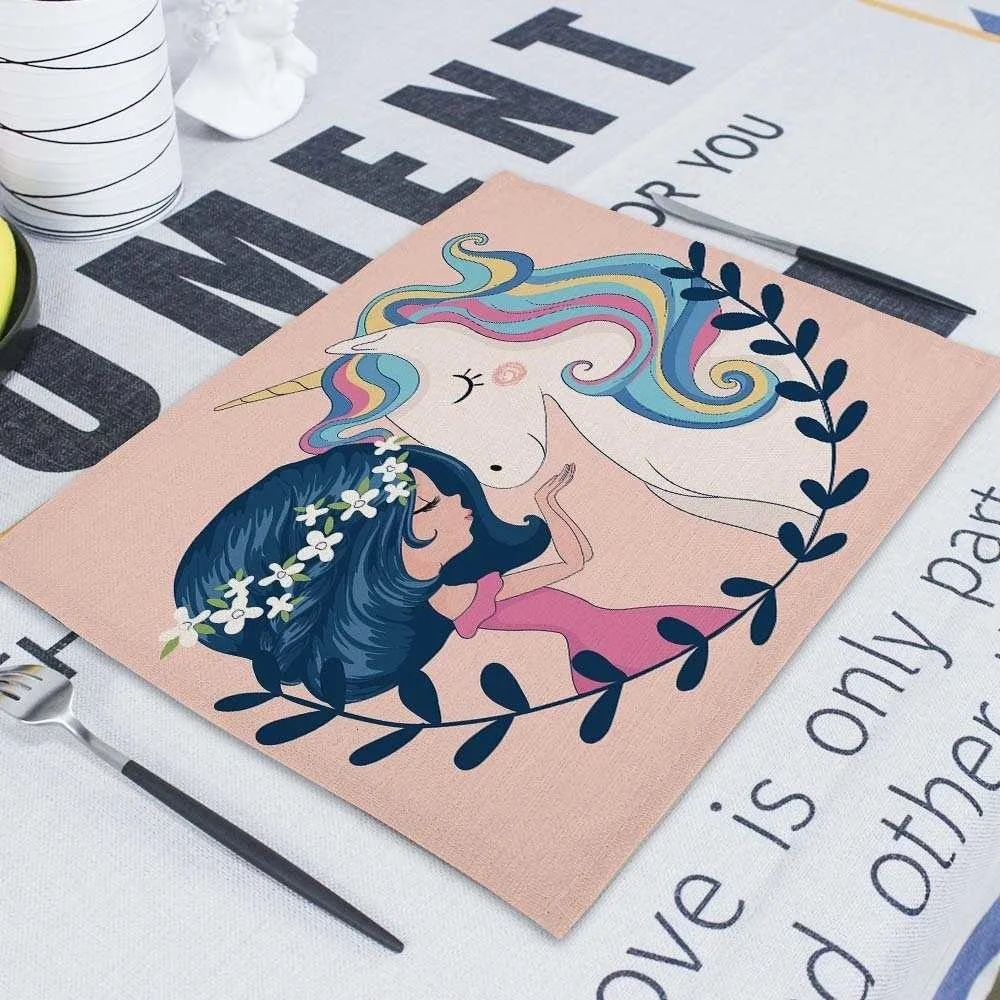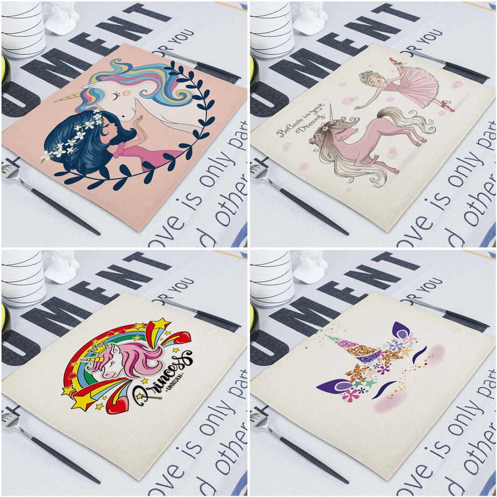 Мультяшный розовый Настольный коврик Единорог, индивидуальные подставки для столовых приборов, набор 42*32 см, коврик для настольной чашки, коврики для обеденного стола
