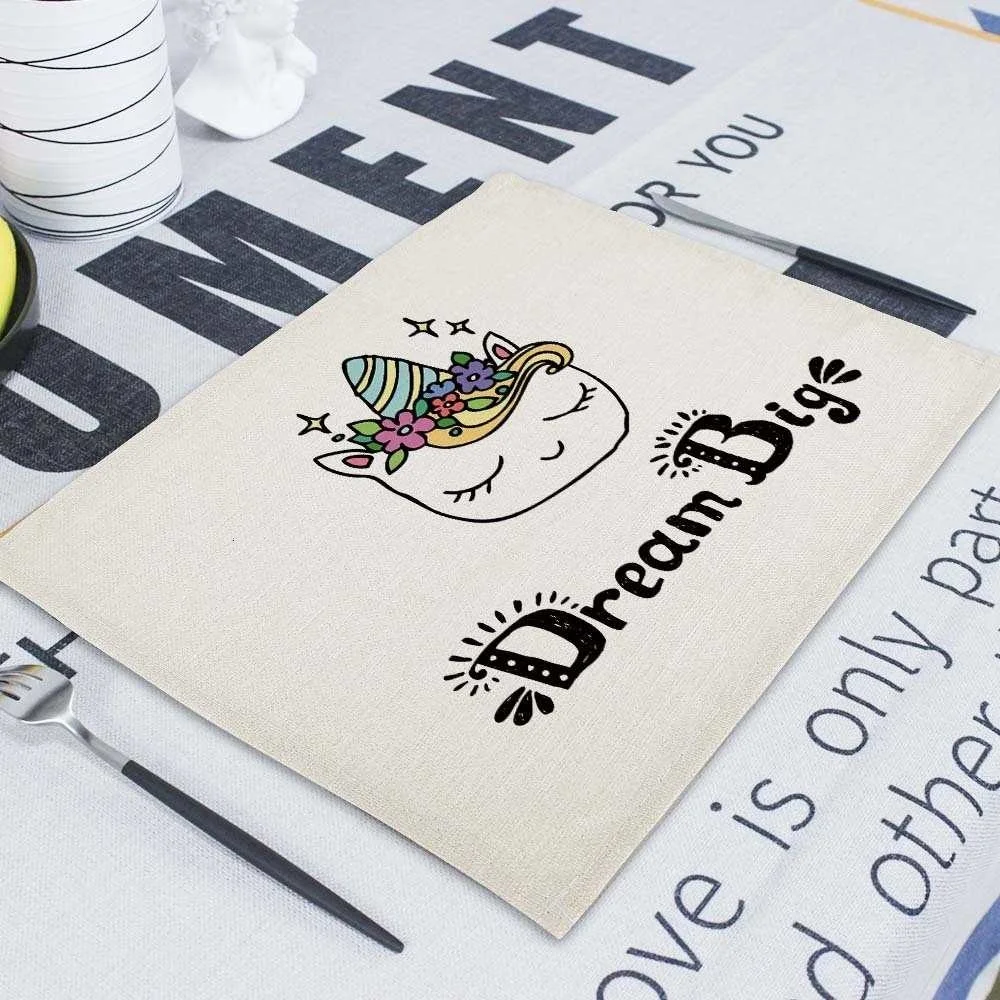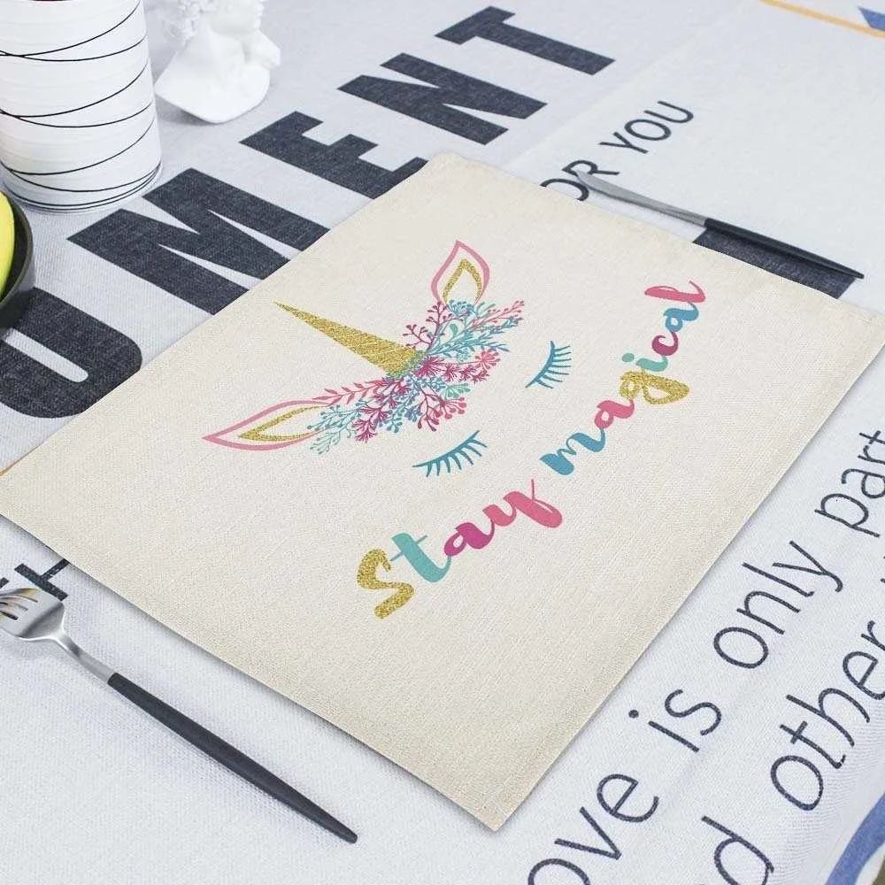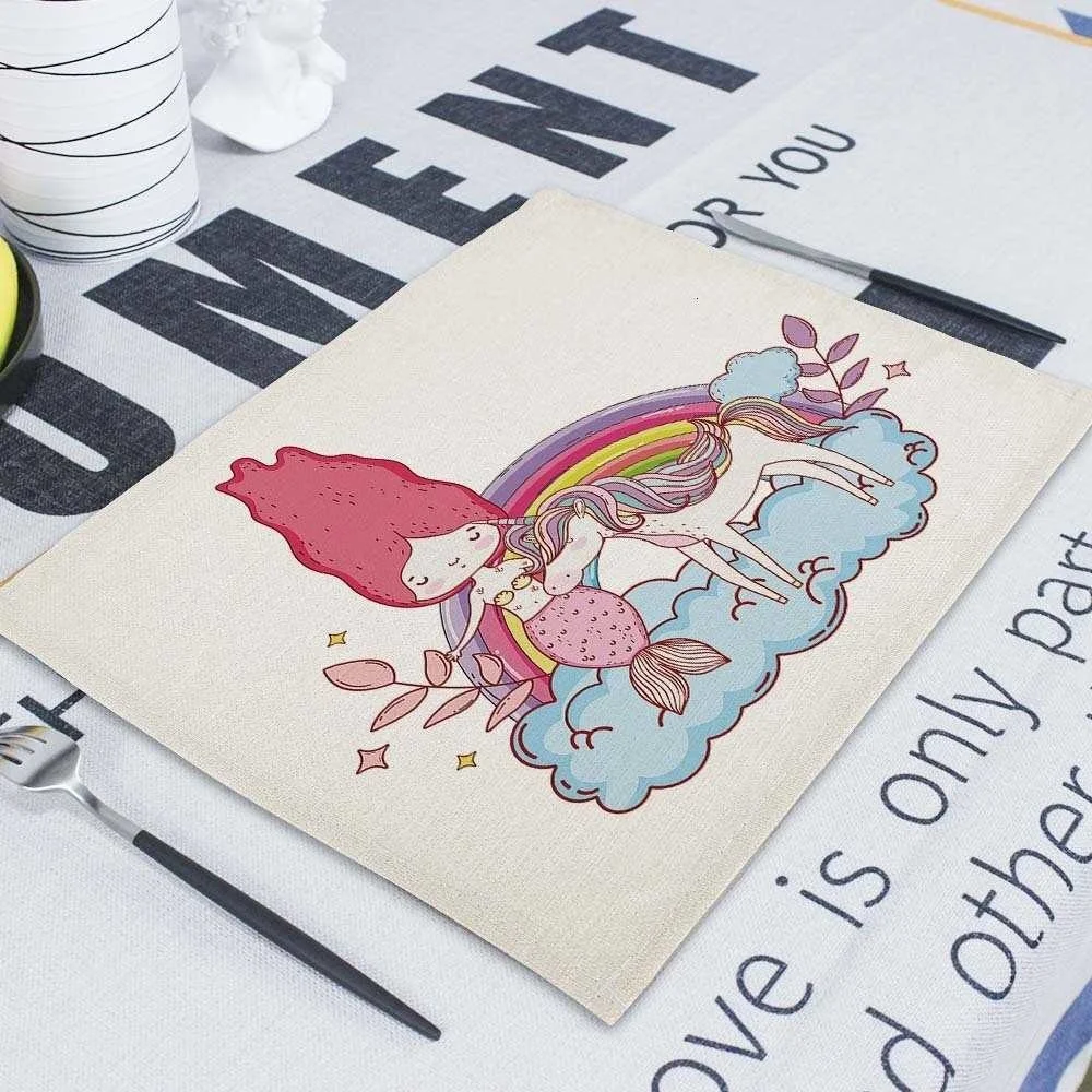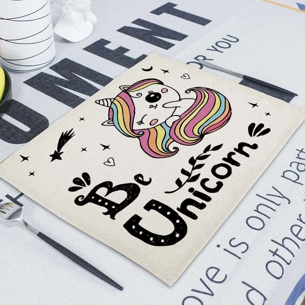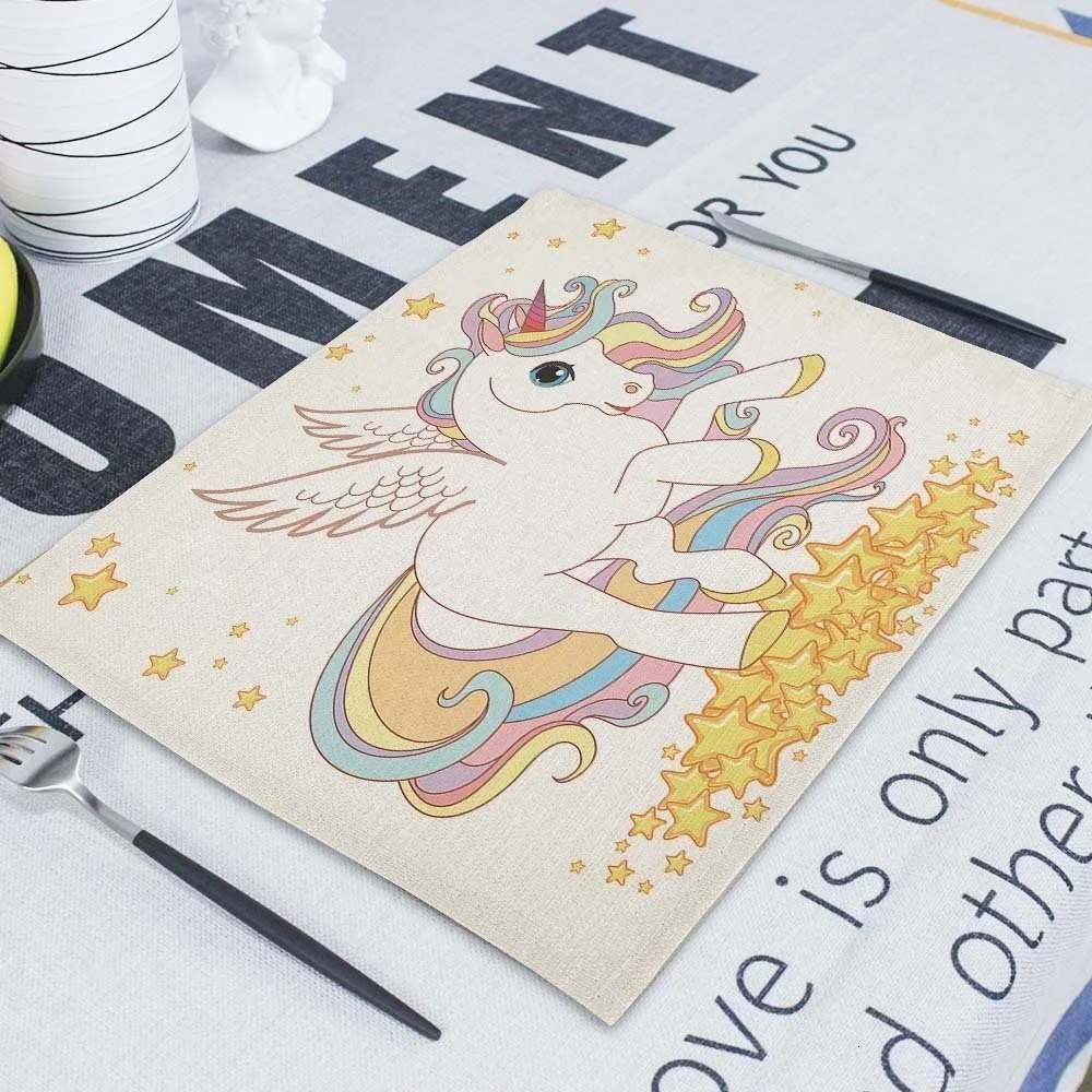 Мультяшный розовый Настольный коврик Единорог, индивидуальные подставки для столовых приборов, набор 42*32 см, коврик для настольной чашки, коврики для обеденного стола