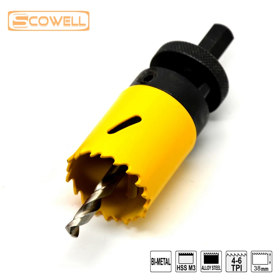 1. Размер диаметра: 19 мм (3/4 "), 22 мм (7/8"),29 мм (1-1/8 "),35 мм (1-3/8"),38 мм (1-1/2 "),44 мм (1-3/4"),51 мм (2 "),57 мм (2-1/4"),64 мм (2-1/2 ") 2. Глубина резки: 38 мм 3. Размер Арбор: шестигранный хвостовик A2,A7 4. Арбор Сверло: 1 шт. 6,35*103 мм сверло 5. Изготовлен из Би-металла M3, подходит для резки нержавеющей стали, стали, железа, сплава, дерева, пластика, гипсокартона и s на 6. Цвет основан на нашем складе