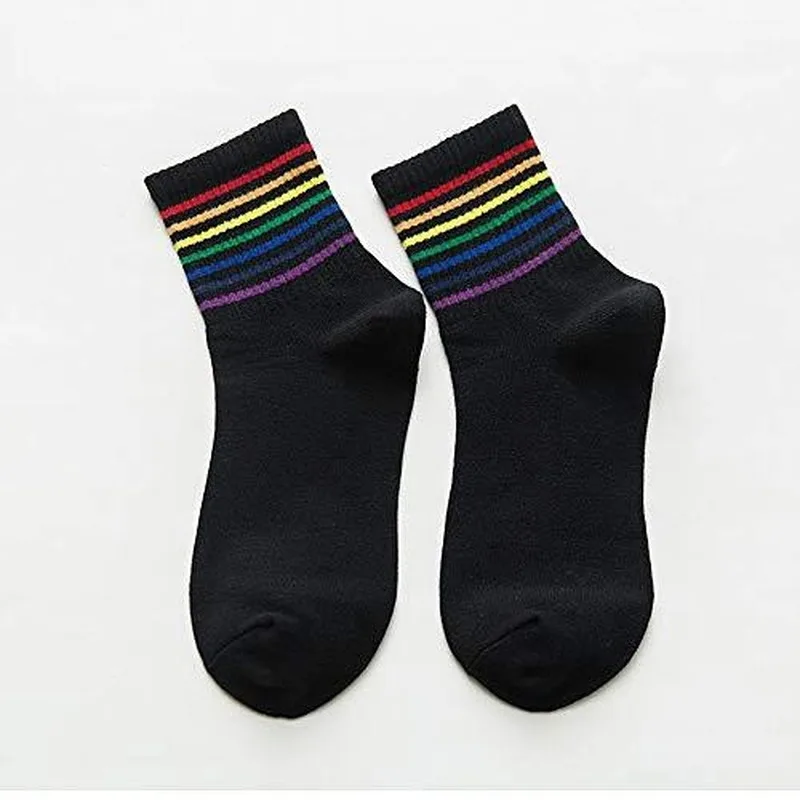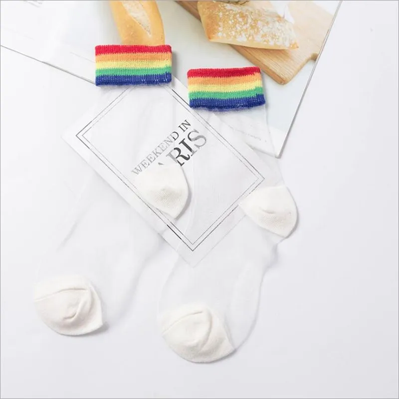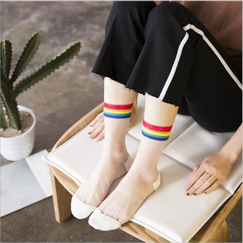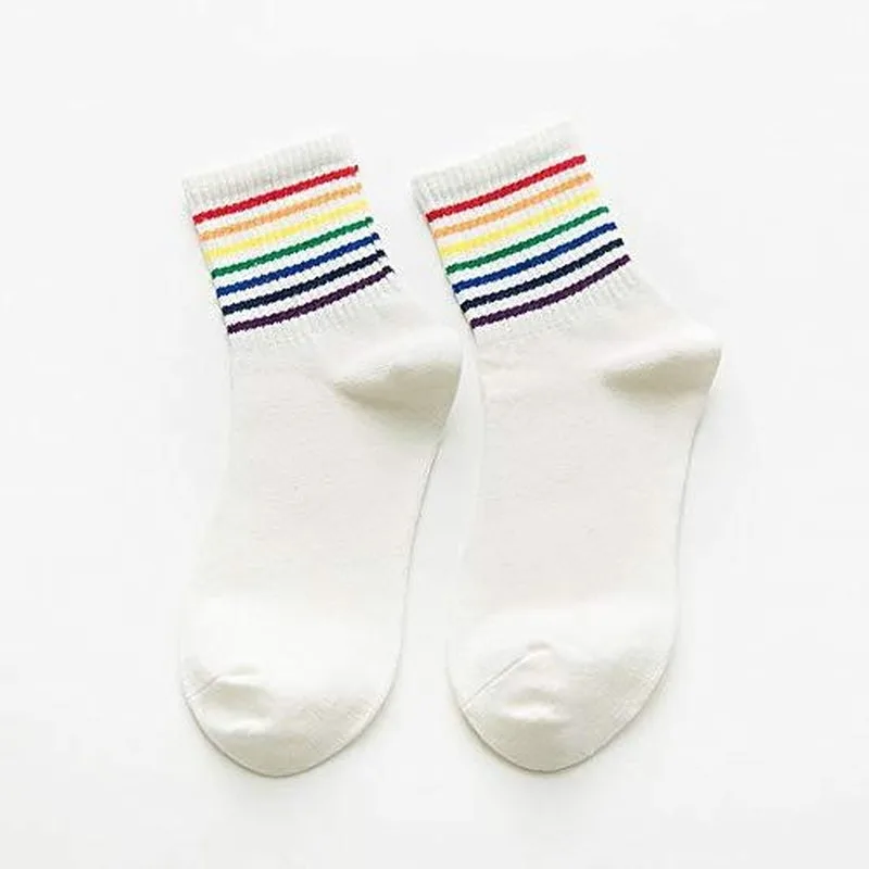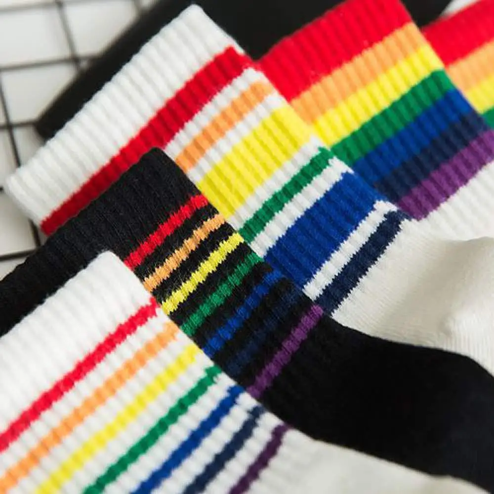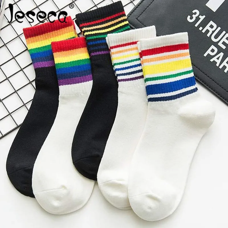 Носки Jeseca женские хлопковые в разноцветную радужную полоску, милые школьные, дизайнерское нижнее белье для девочек, в стиле Харадзюку