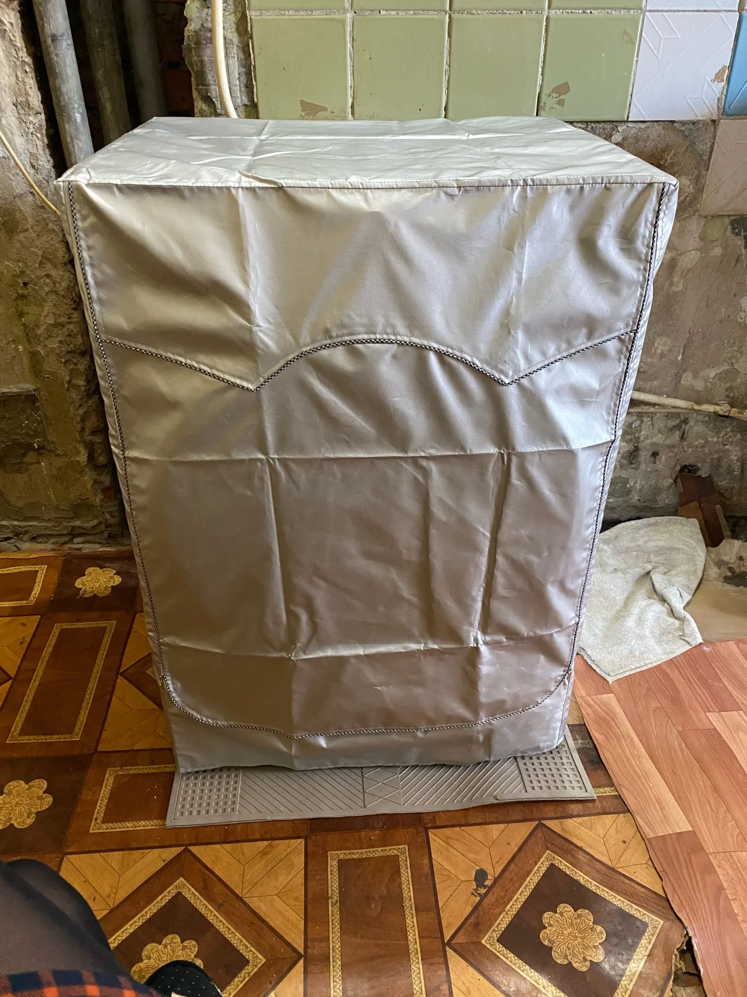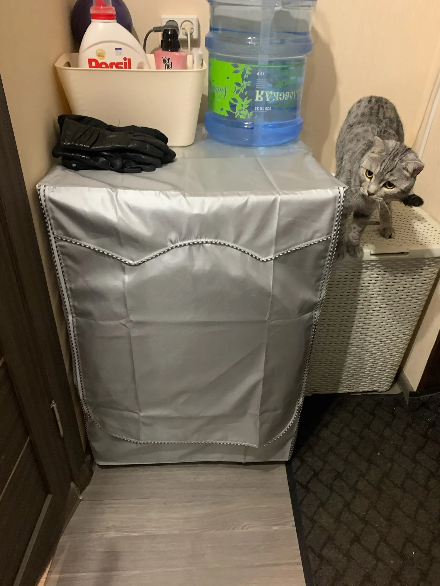 Это толстая ткань, а молнии качественные. Его легко разместить и прикрепить к задней части стиральной машины.