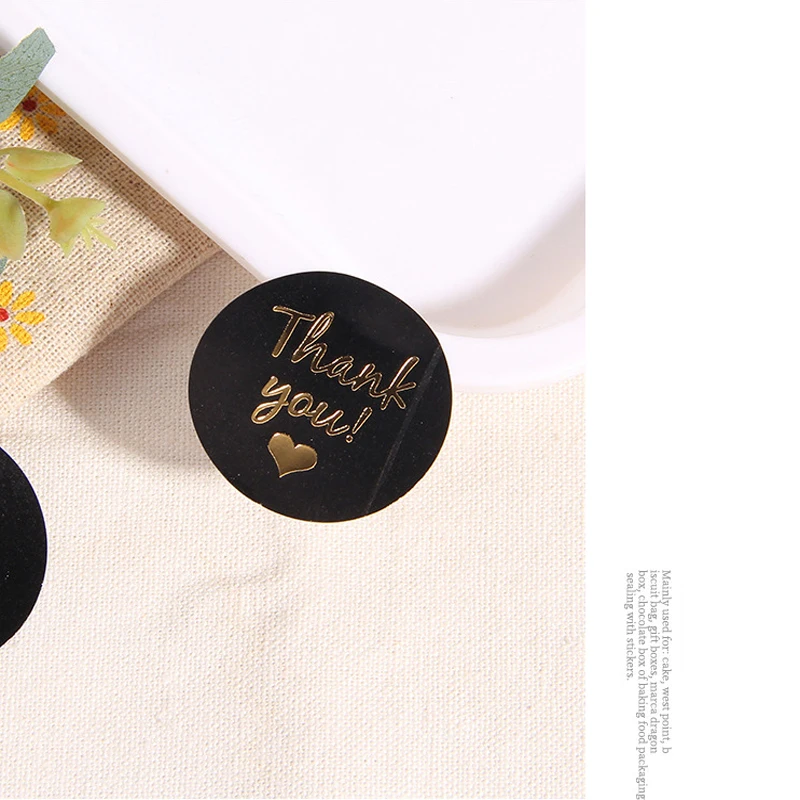 120 шт.лот, милый Золотой, спасибо за любовь, Круглый, черный, ручная работа, упаковка для торта, уплотнительная этикетка, крафт-наклейка для выпечки, DIY, Подарочные наклейки