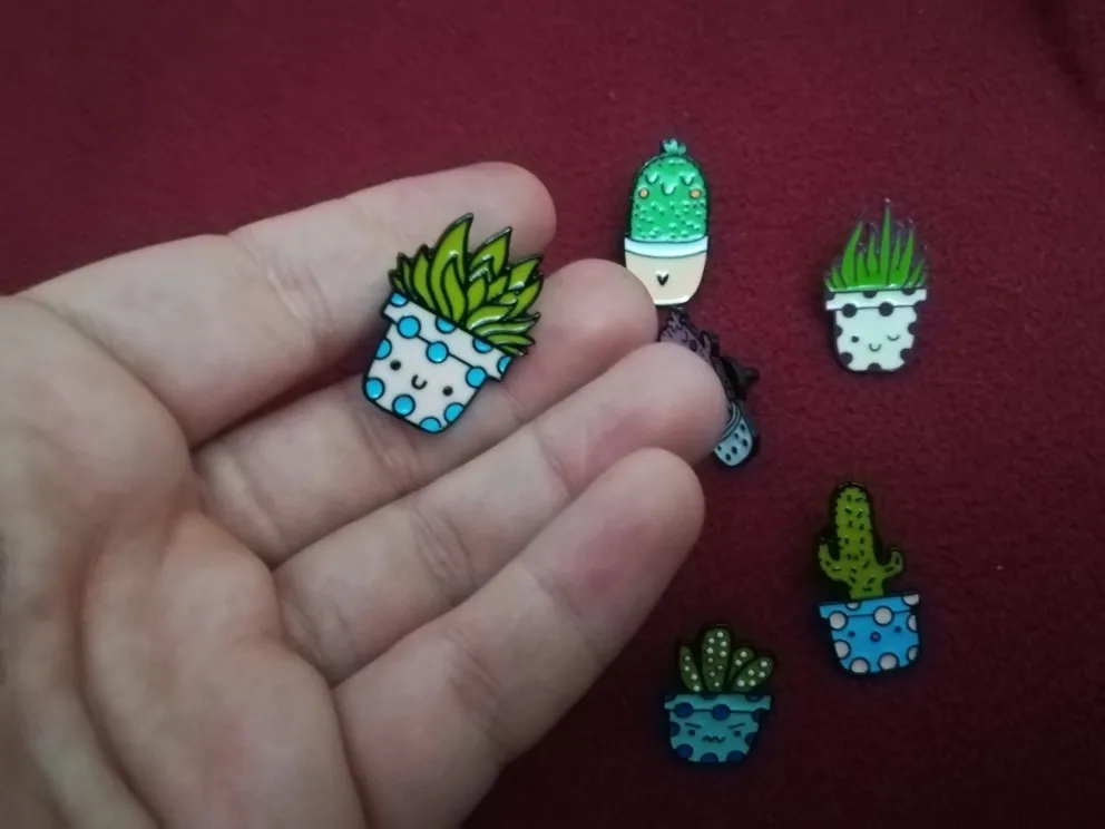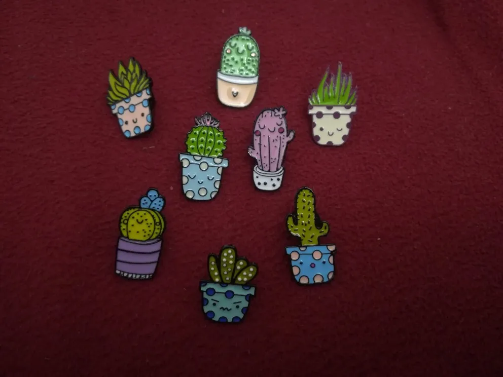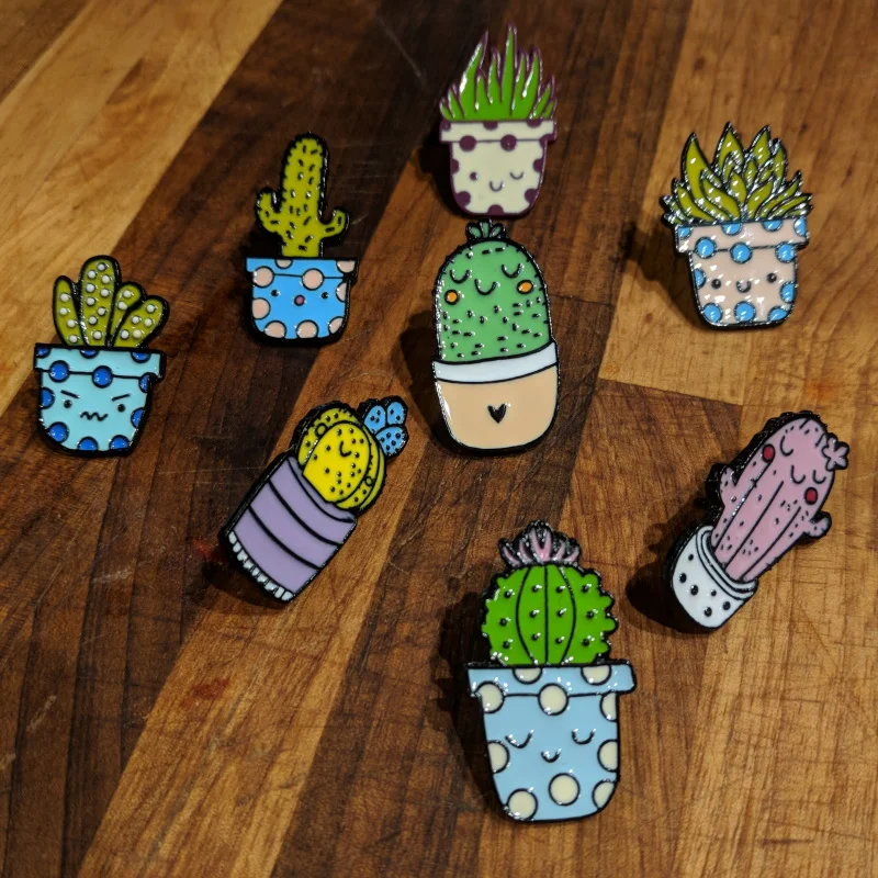 Броши С КАКТУСОМ и алоэ, с эмалью, 8 видов
