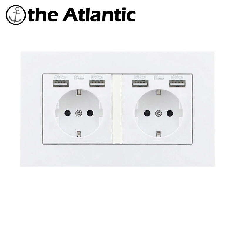 Atlectric DE EU RU, Испания, розетка, двойной usb порт для зарядки, Настенная двойная розетка, стеклянная панель, розетка 146 мм * 86 мм переходник usb,разетка с usb для дома,розетки