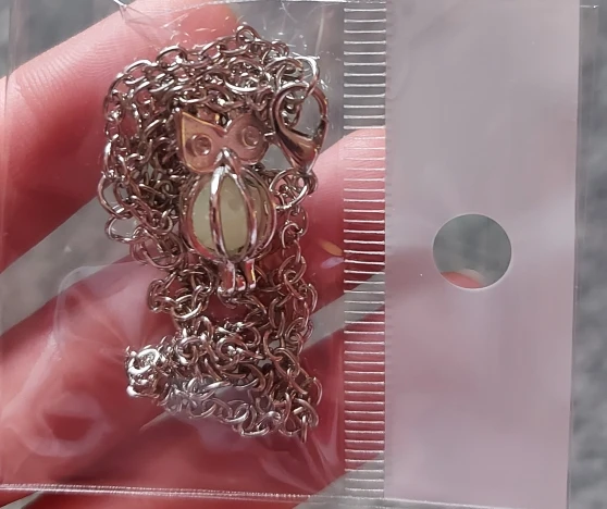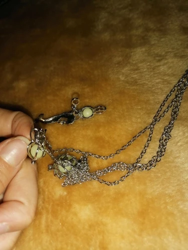 После поглощения солнечного света, вспышки фонарика или телефона ожерелье будет сиять в темноте.