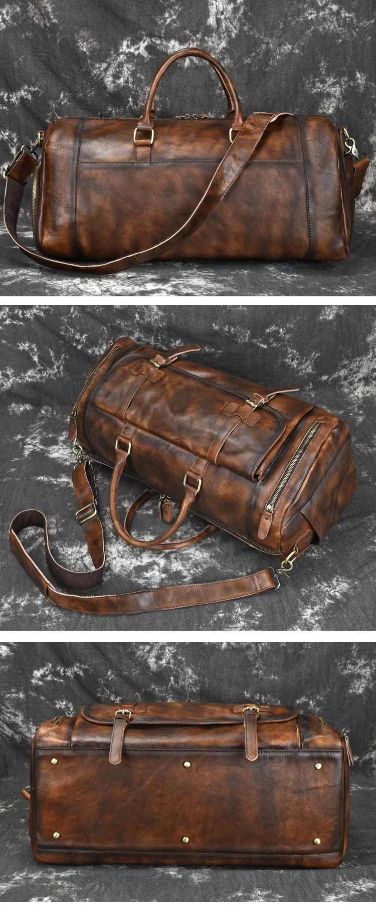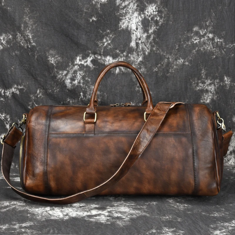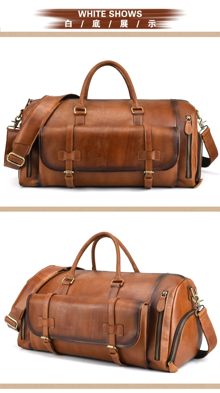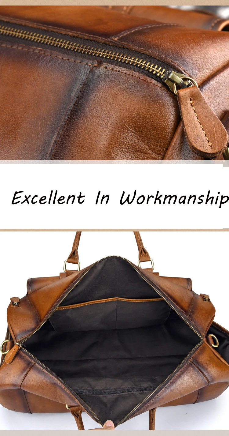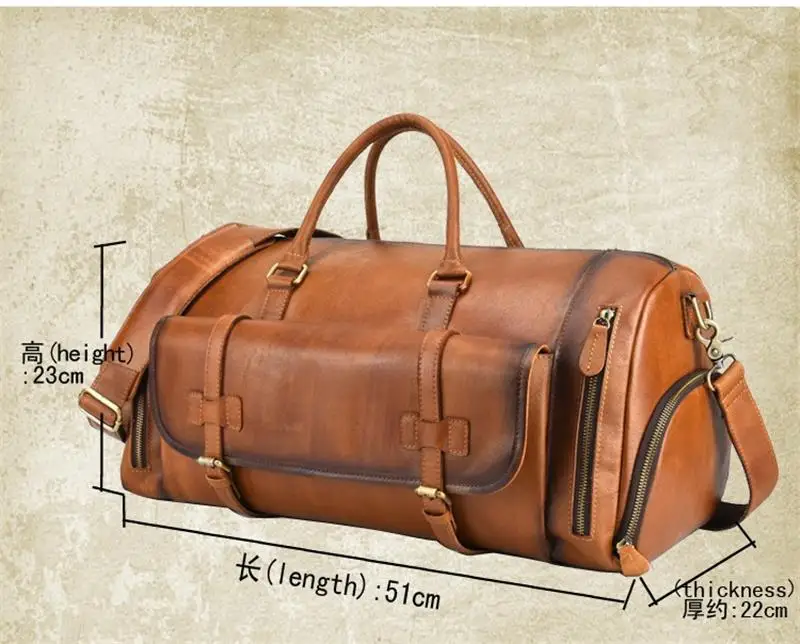 Премиум-качества Изготовлено из натуральной кожи, 100% натуральной воловьей кожи Отличное качество изготовления Материал: 100% натуральная кожа крупного рогатого скота Размер: 52 см x 23 см x 24 см (1-2 см ошибка размера нормальная) Цвет: коричневый Цвет Вес: около 2,2 кг Стиль: популярный дизайн, модный крутой стиль Особенность 1: сумка поставляется с плечевым ремнем 1 шт. Особенность 2: Большая емкость с карманом для обуви Особенность 3: подошва с защитой от заклепок-двойная износостойкость