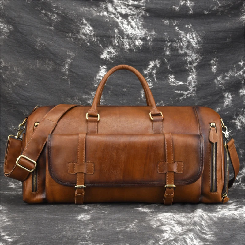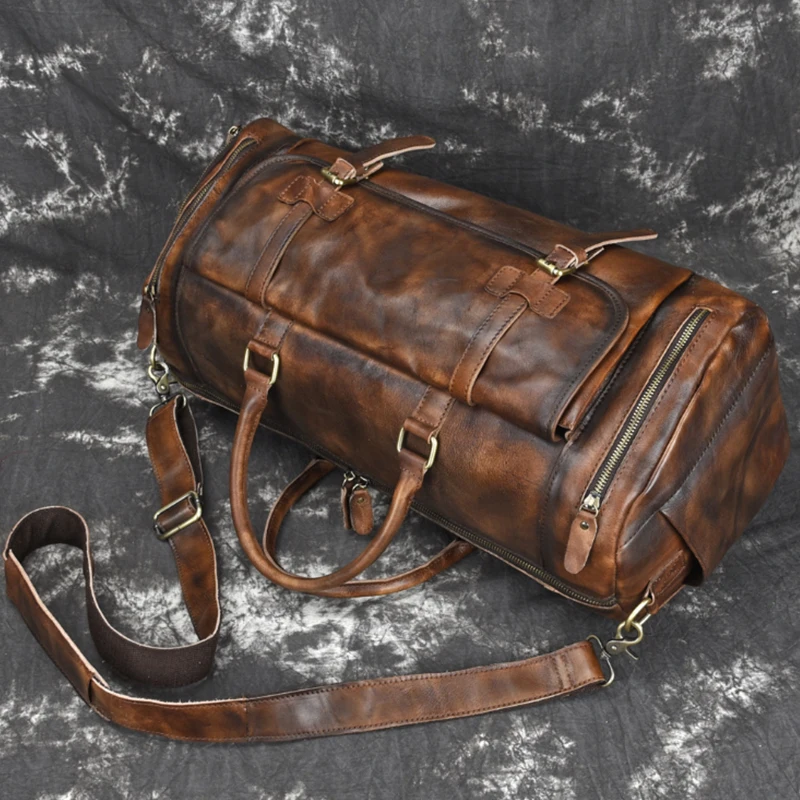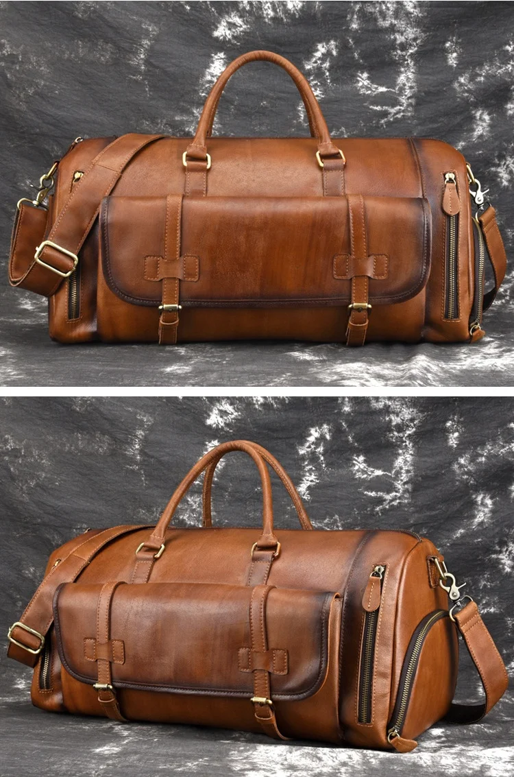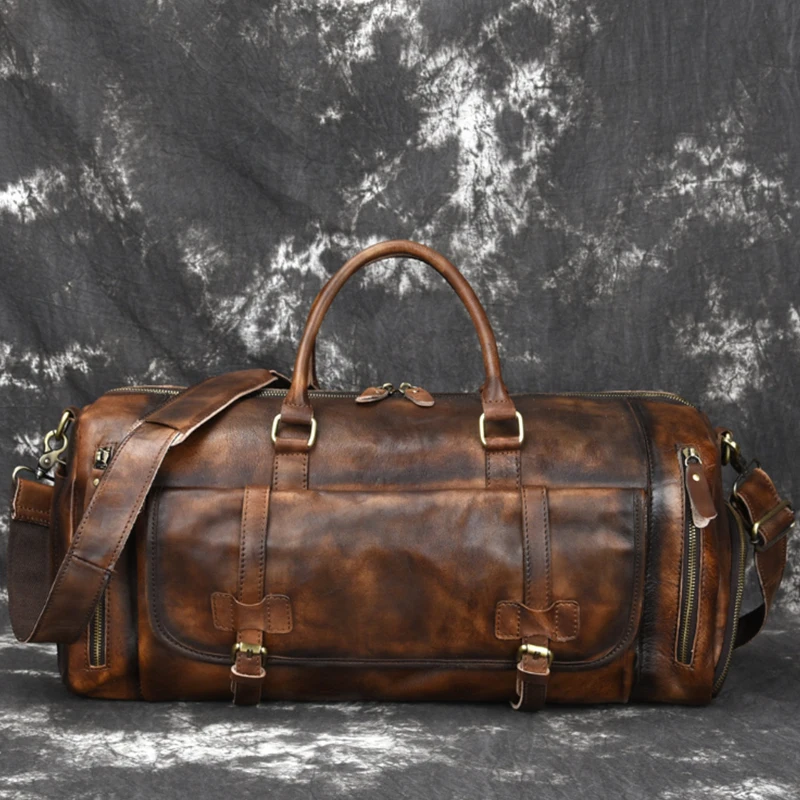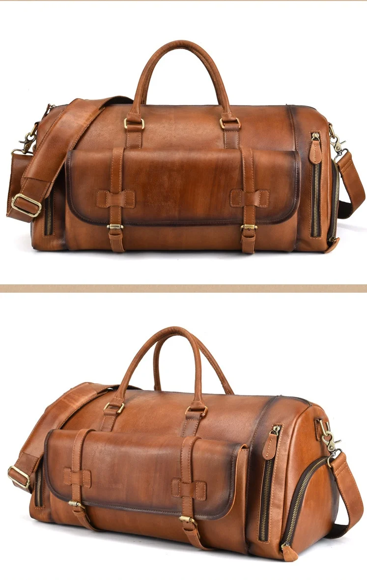 Премиум-качества Изготовлено из натуральной кожи, 100% натуральной воловьей кожи Отличное качество изготовления Материал: 100% натуральная кожа крупного рогатого скота Размер: 52 см x 23 см x 24 см (1-2 см ошибка размера нормальная) Цвет: коричневый Цвет Вес: около 2,2 кг Стиль: популярный дизайн, модный крутой стиль Особенность 1: сумка поставляется с плечевым ремнем 1 шт. Особенность 2: Большая емкость с карманом для обуви Особенность 3: подошва с защитой от заклепок-двойная износостойкость